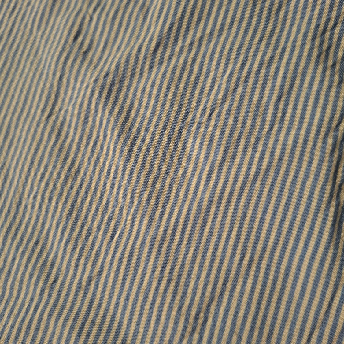 Blårandig blus med bara axlar samt kmyte och knappar fram. (Sista bilden visar tröjans material)