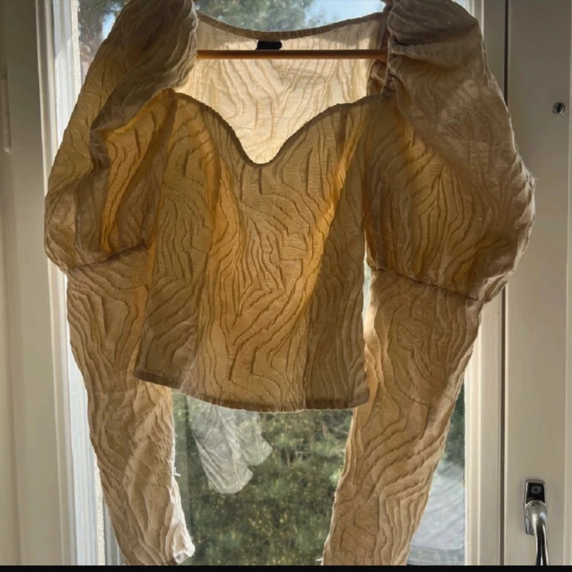 Blus med axelpuffar. Otroligt fin, men kommer ej till användning.