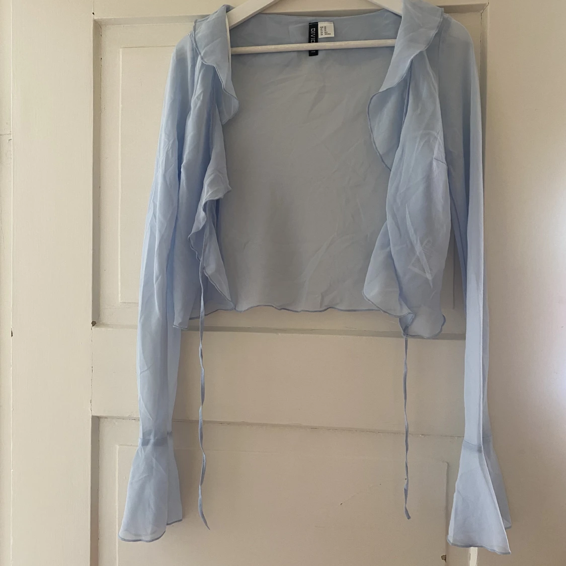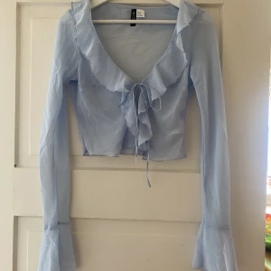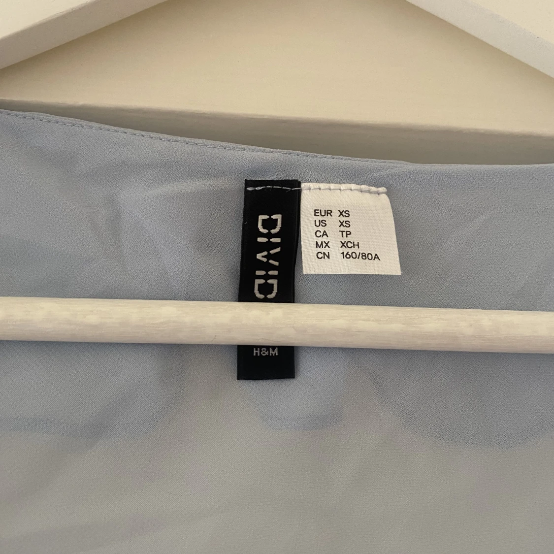 En tunn blå blus som tyvärr aldrig kommer till användning därför säljes den. Den är från hm i storlek XS men skulle säga att den passar även för xxs-s. Priset kan diskuteras