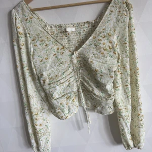 Jättesöt vit blus med gula blommor, aldrig använd.