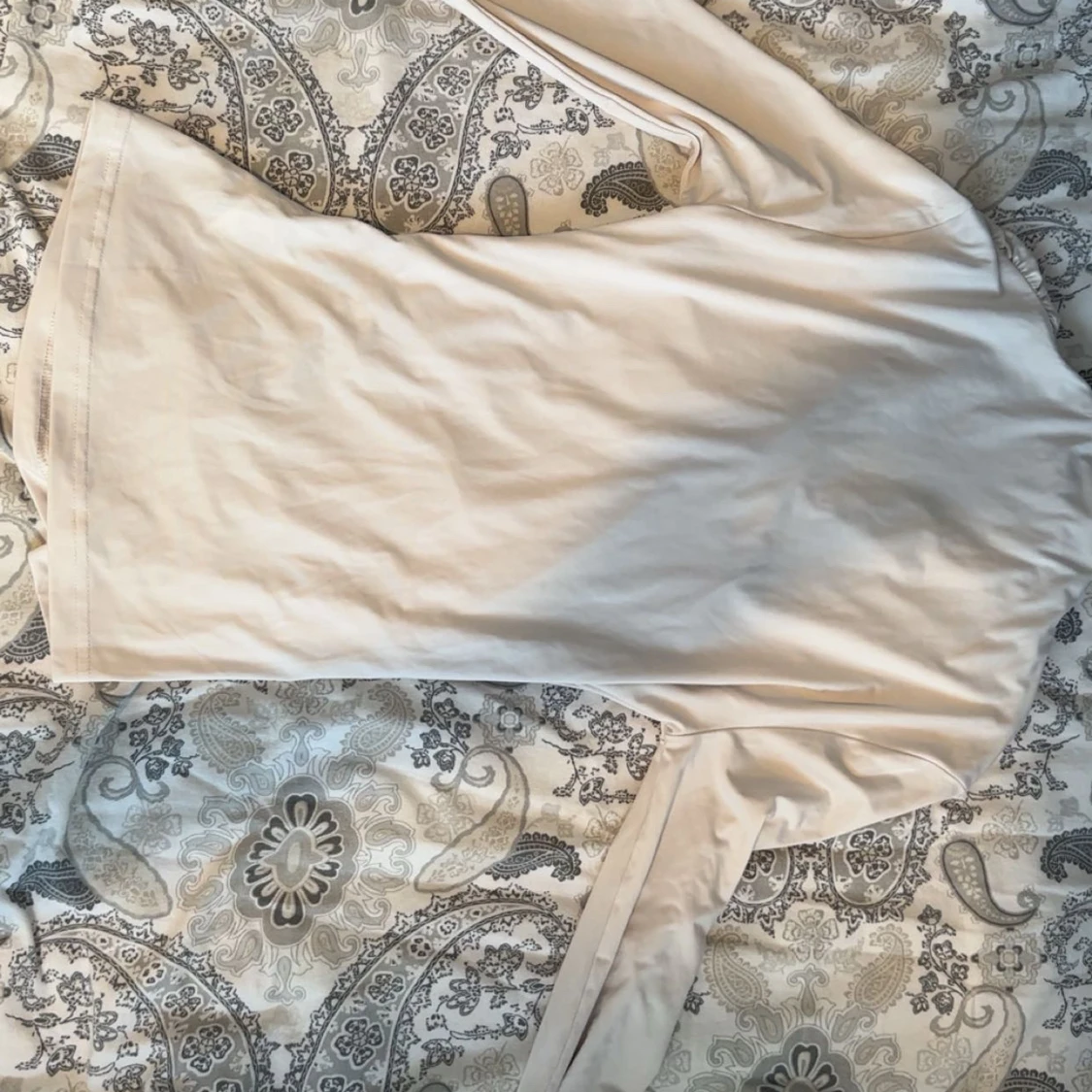 Snygg ljusbeige tröja med långa ärmar och lätt rynkade detaljer vid sidan. Tröjan har en enkel, stilren design och är tillverkad i ett mjukt, stretchigt material som sitter bekvämt på kroppen.