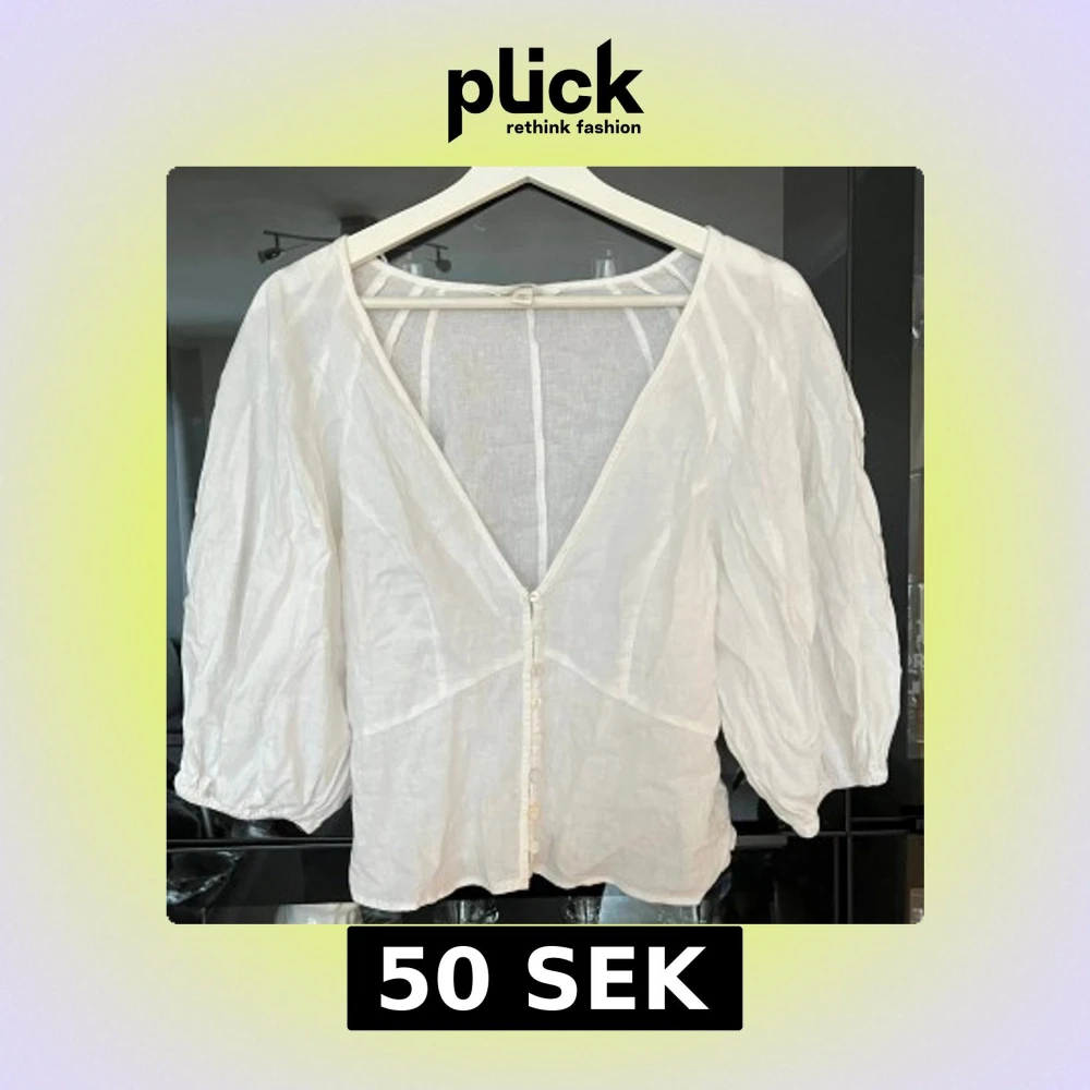 Snygg blus från Gina - Jättesöt blus!❣️Enda lilla defekten är att jag använt säkerhetsnål vid urigningen så det är en liten defekt från det men inget stort🥰Pris går att diskutera!