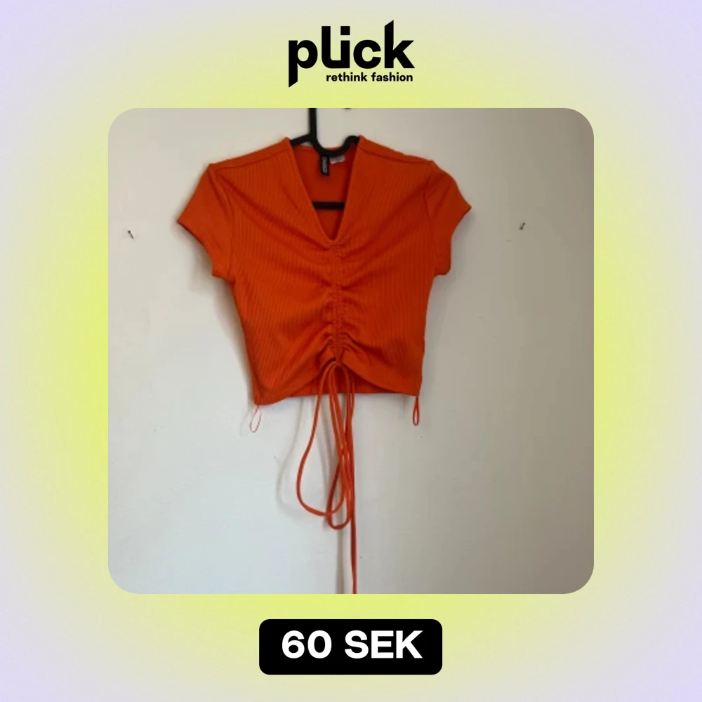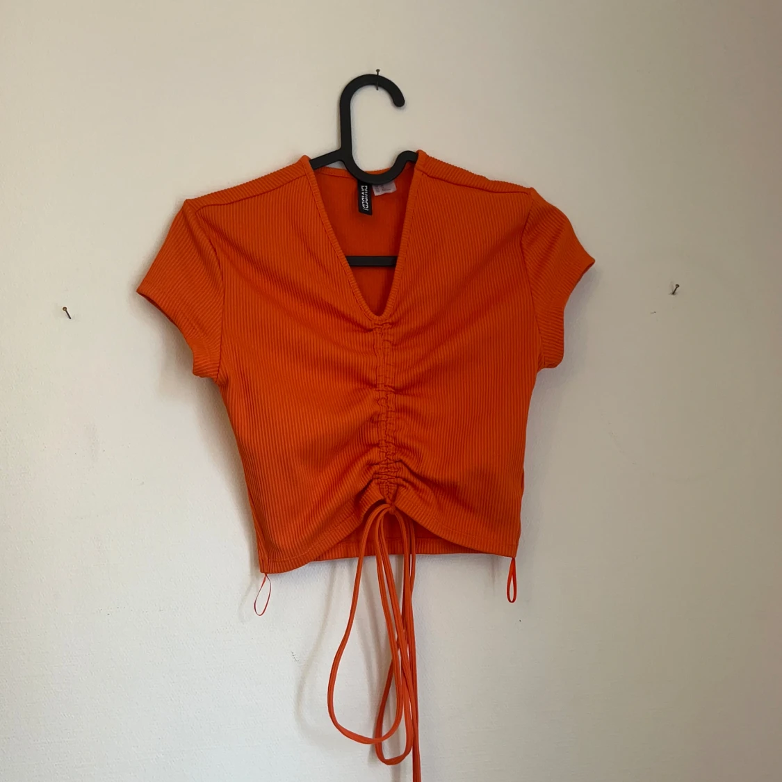 Orange scrunch tie top with a cropped fit