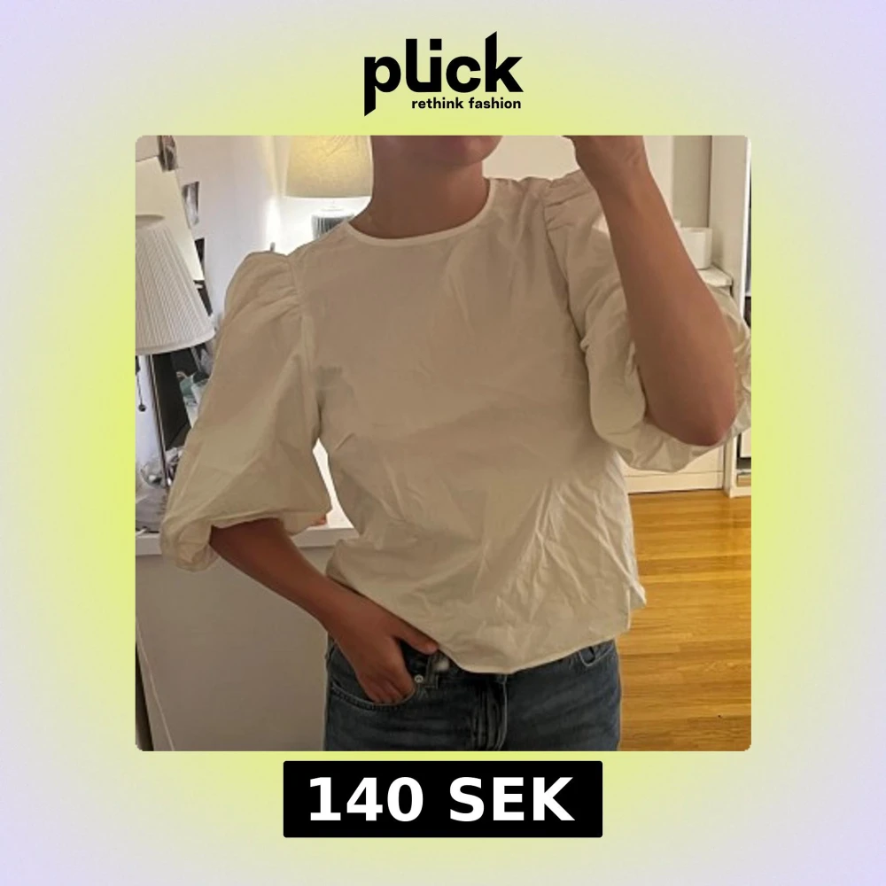 Så fin vit blus med svarta rosetter i ryggen🤍🤍väldigt skrynklig på bilden, går att stryka!