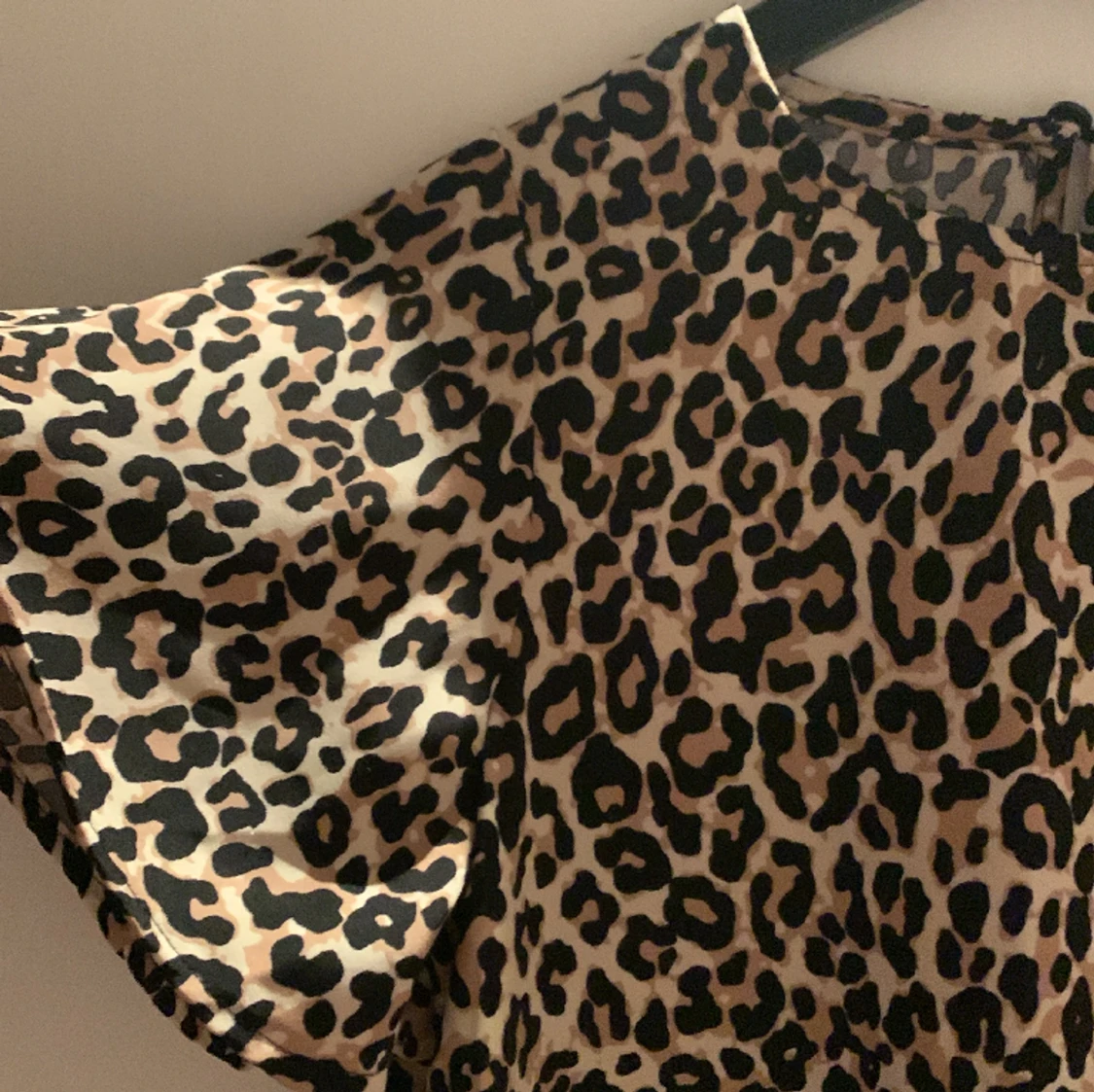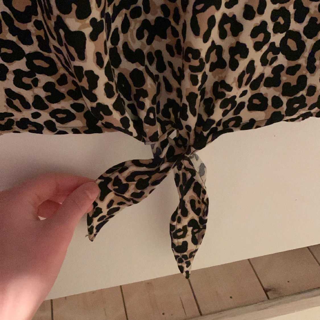 Det här är en tröja som har använts 1-5 gånger och det är som 2 band längst ner på tröjan och dem går att knyta till en ”rosett”. Tröjans yttertyg är i polyester och tröjan är också lite ”luftig”. 💓