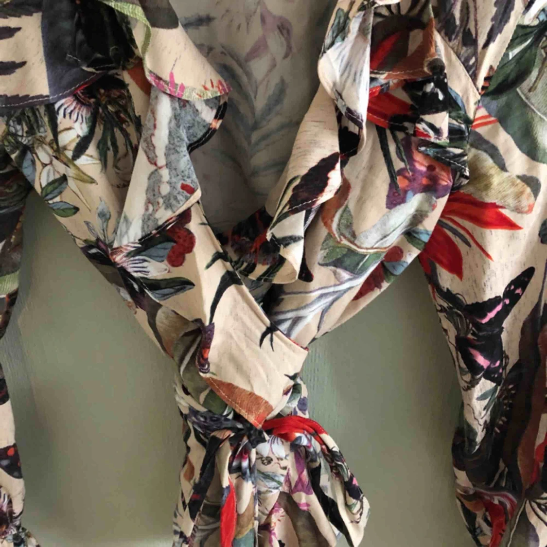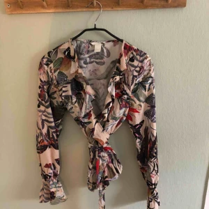 Jättefin omlottblus från hm med volang kring halsen och i ärmslut. Använd typ 1 ggn pga för liten. Superfin till höga vida jeans!