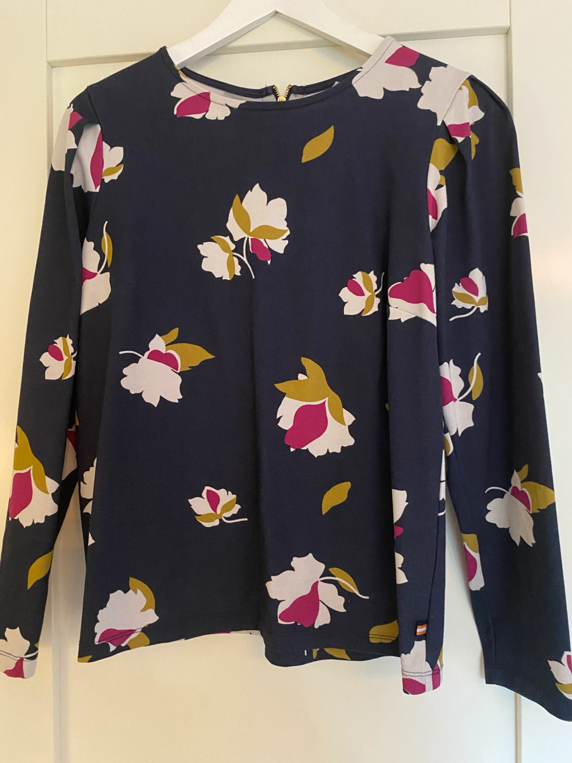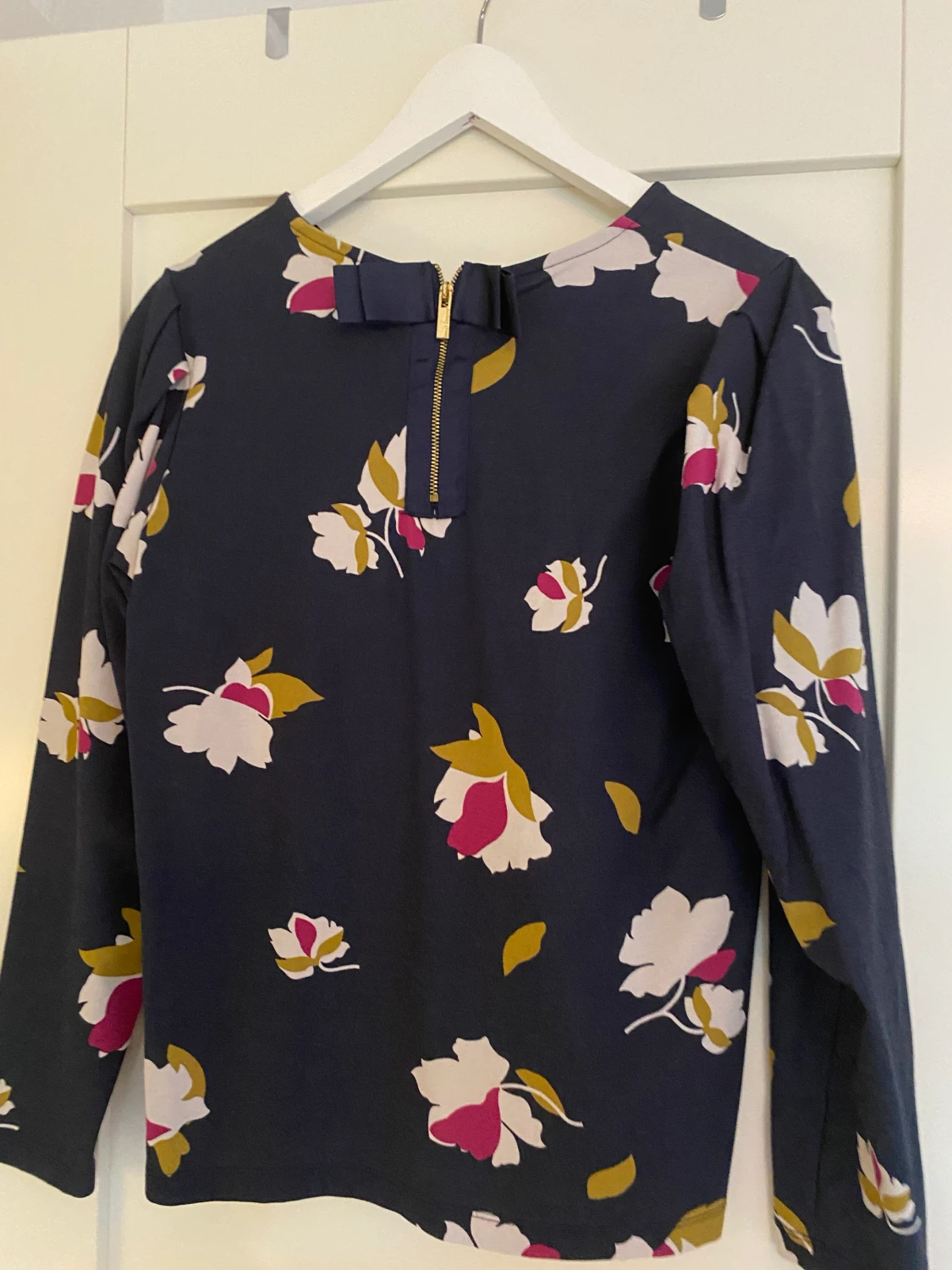 Fin blus med väldigt smickrande psssform och fint mönster! Lite använd.