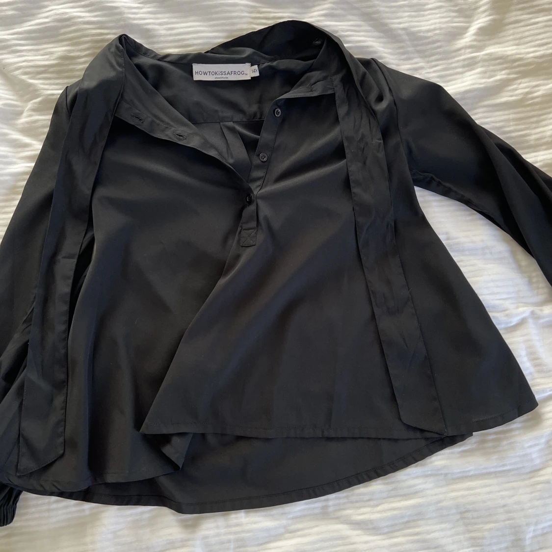 Superfin blus från märket Howtokissafrog. Sparsamt använd. 180kr. Barnstorlek 14y men skulle säga att den sitter som en Xs-s.