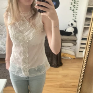Söt blus/linne, den har ett linne under självaste tröjan, skulle säga att den sitter som en 36a men det står 38 på den 💗