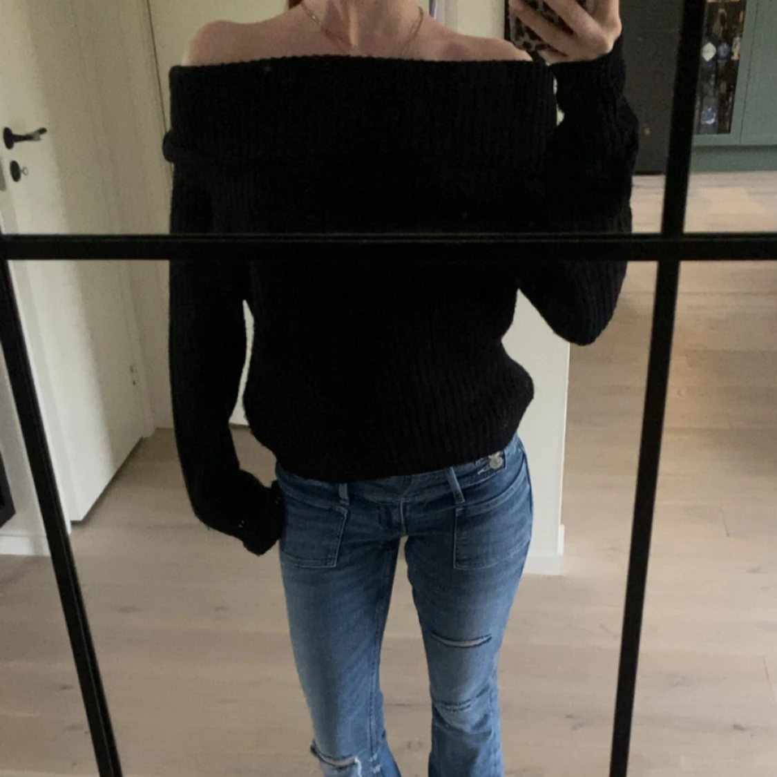 Svart stickad off the shoulder tröja från JDY i storlek S säljer då den inte har kommit till användning så mycket, köpt från zalando men säljs inte längre i Sverige.