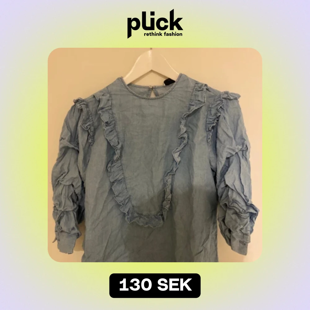 En jeans liknande blus från Zara. Lite räfflade trekvarts armar. Bra skick och använd några gånger💕Tyget är ganska tunt, inte genomskinligt och liknar jeans tyg men är absolut inte riktigt jeans. Skriv för fler bilder.💘