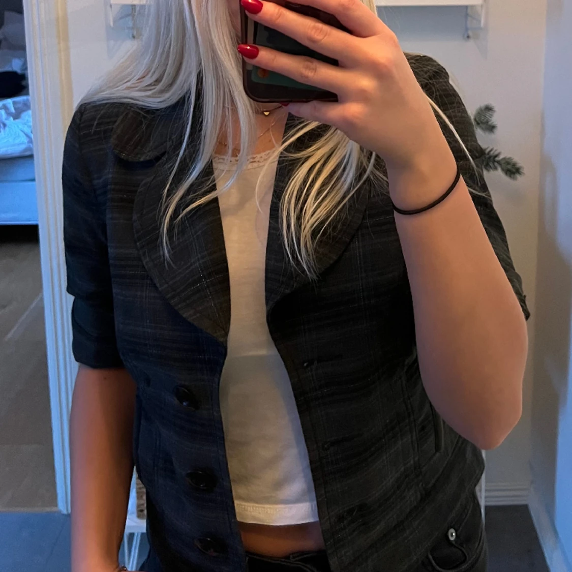 Jättefin och stilren kavaj i storlek 34! Fin att ha både knäppt och öppen🙌🏼🖤