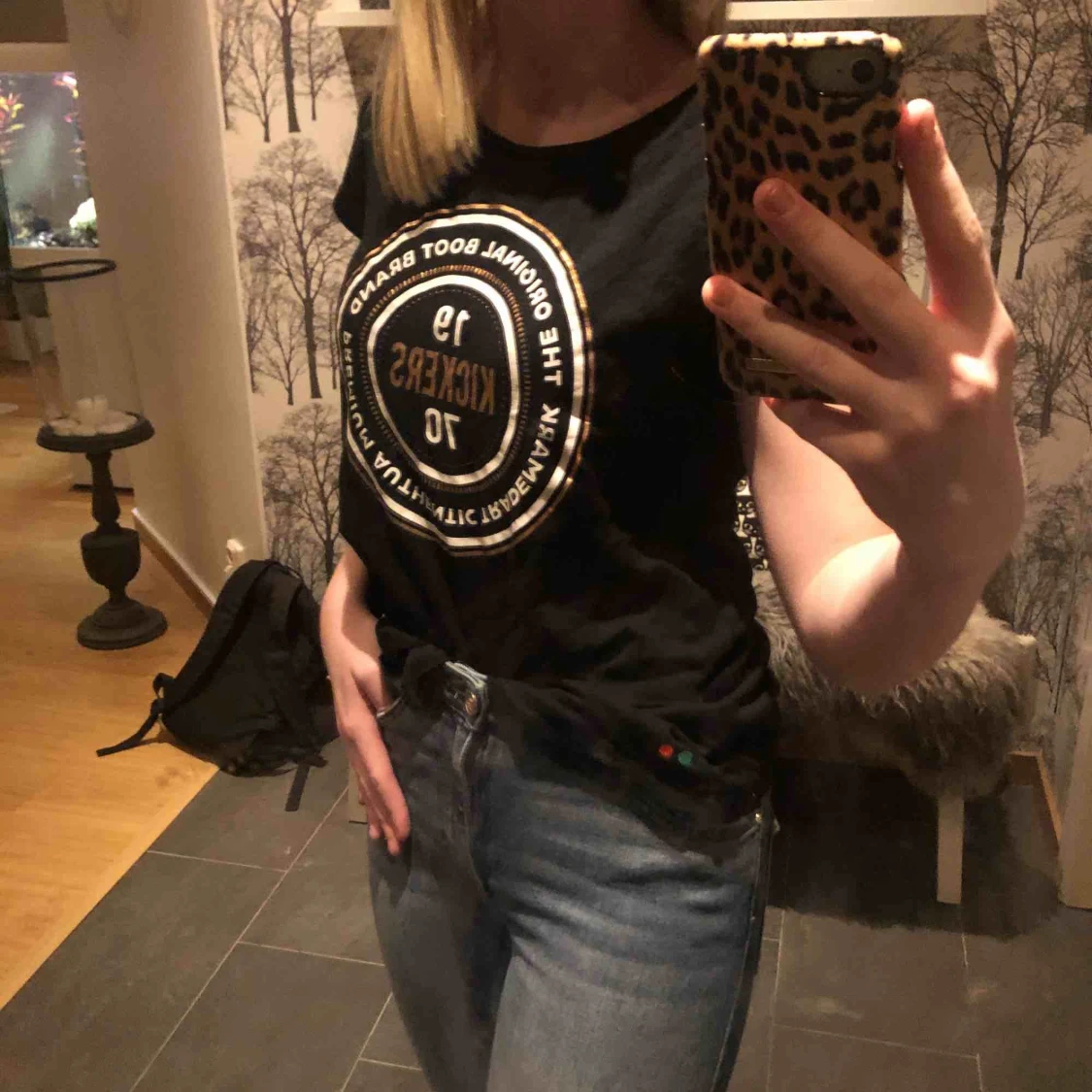 En t-shirt från kicKers👕✨Inga skador på plagget, dock inte märkt med storlek men den passar mig som vanligtvis är en s☺️💫💕FRIFRAKT!!😛❤️