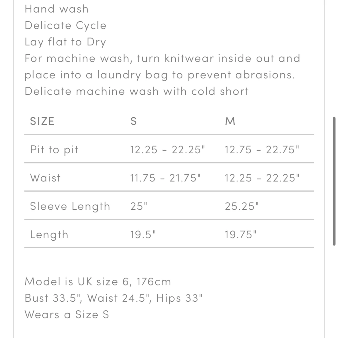 Size is M - see image for details. Didn’t wear it at all after buying and washing as it doesn’t fit me well. - Toga neckline - Balloon sleeve - Cable knit detail