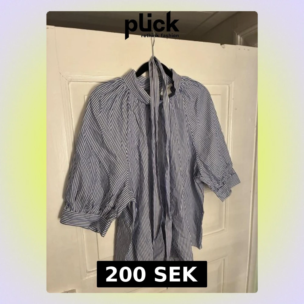 Säljer denna charmiga blus från Holly & Whyte med klassiskt blåvitt randigt mönster. Har ett matchande skärp/band att knyta i midjan för en smickrande silhuett. Perfekt för en stilfull och avslappnad look. Ett måste i garderoben! Passar M/L.
