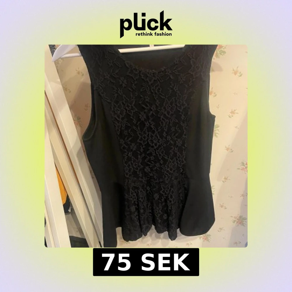 Säljer en svart ärmlös blus från Stockholm i storlek L. Toppen har vacker spets framtill och baktill, med en lätt utställd nederdel. Perfekt för dig som gillar stilrena och feminina detaljer.