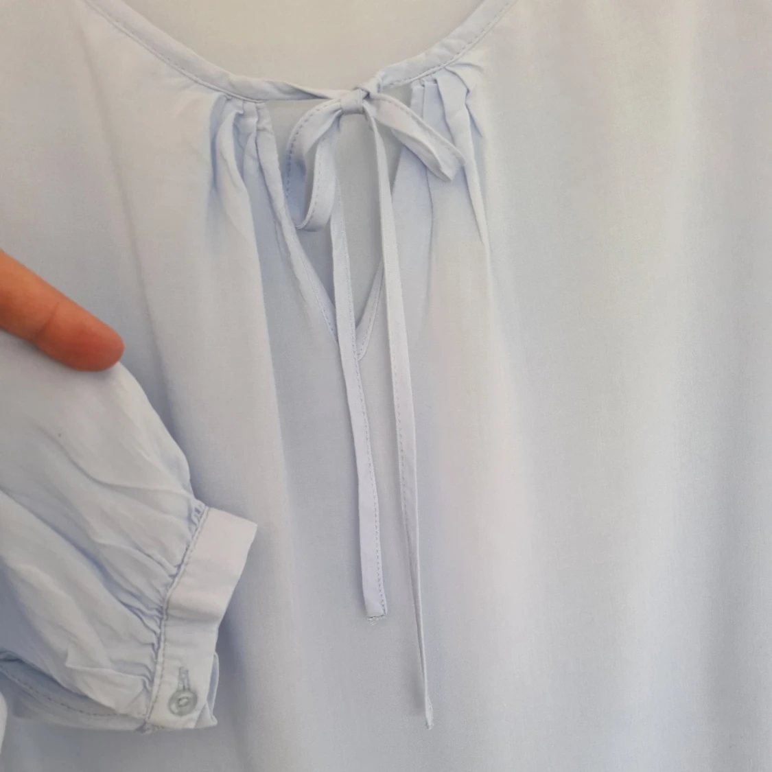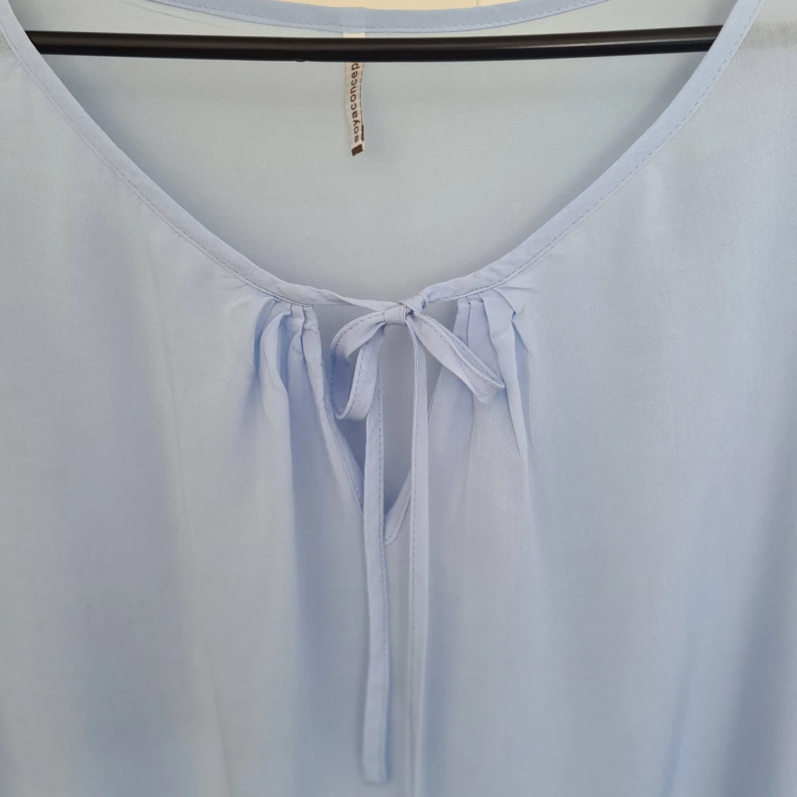 Ljus blå blus från Soyaconcept strl L tun och skönt tyg liten rosett