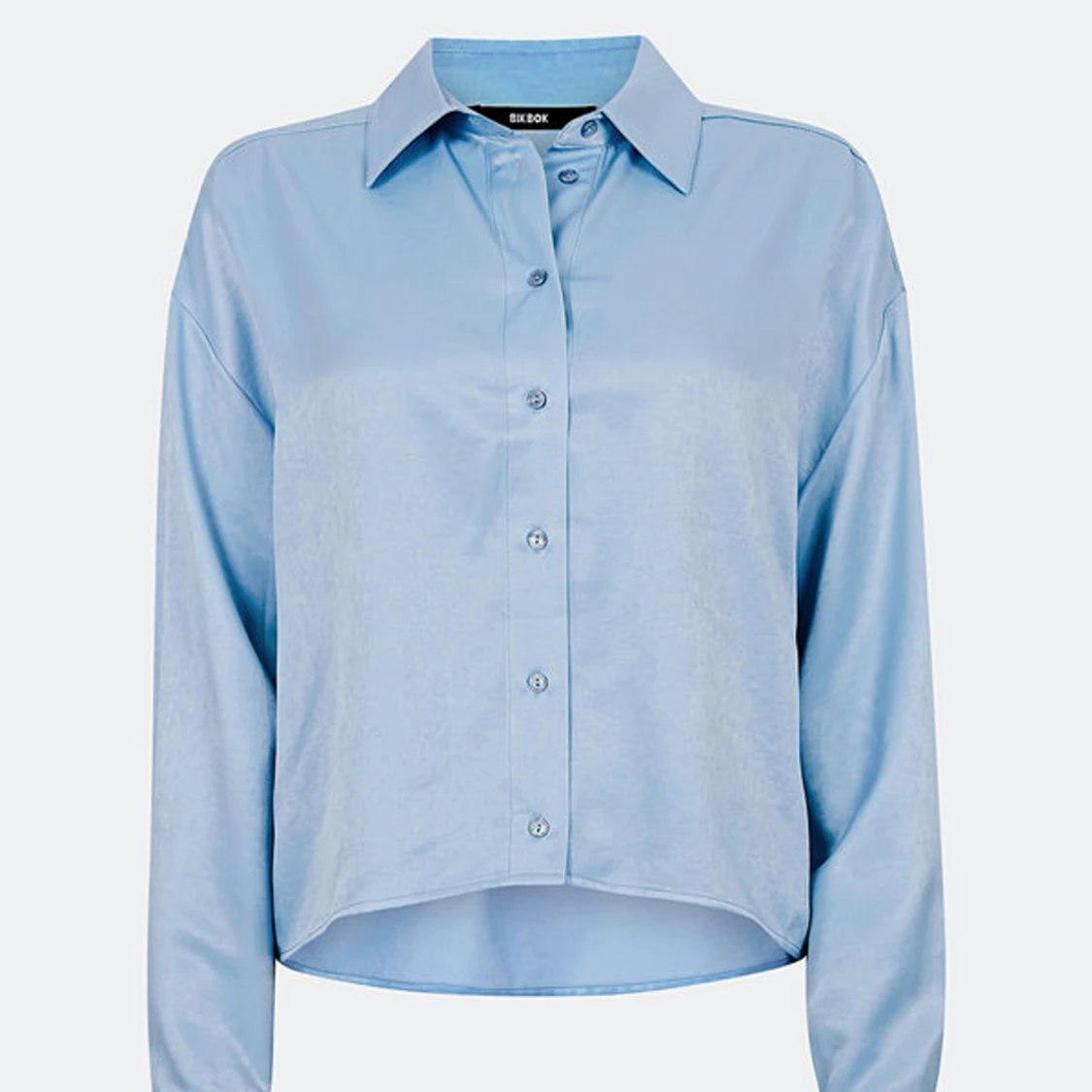 Blå satin blus från Bikbok, helt ny med prislappen kvar. Nypris 299kr
