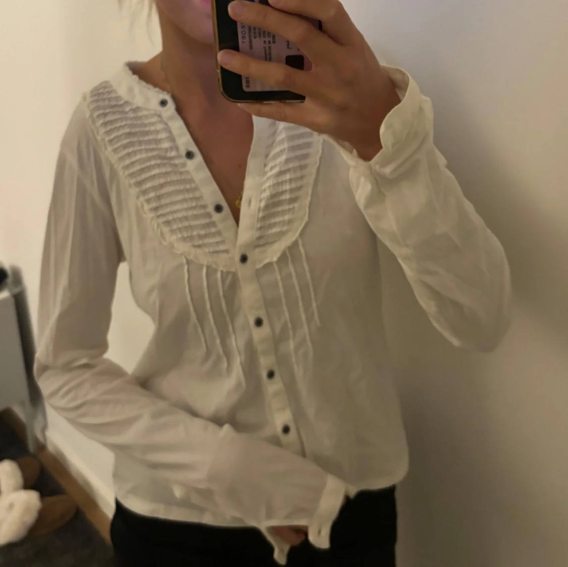 Jättegullig blus/tröja. Den är köpt secondhand så finns varken storlek eller märke men skulle säga S/M