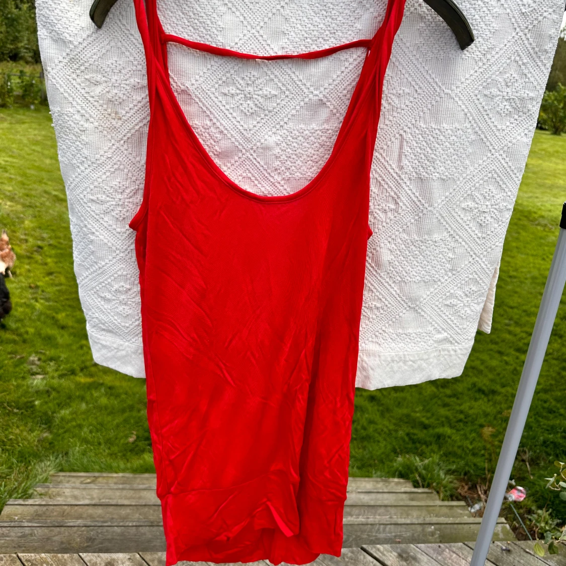 Röd fest top med djup urringning bak