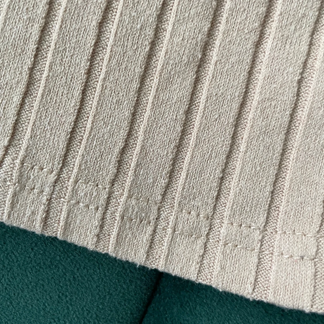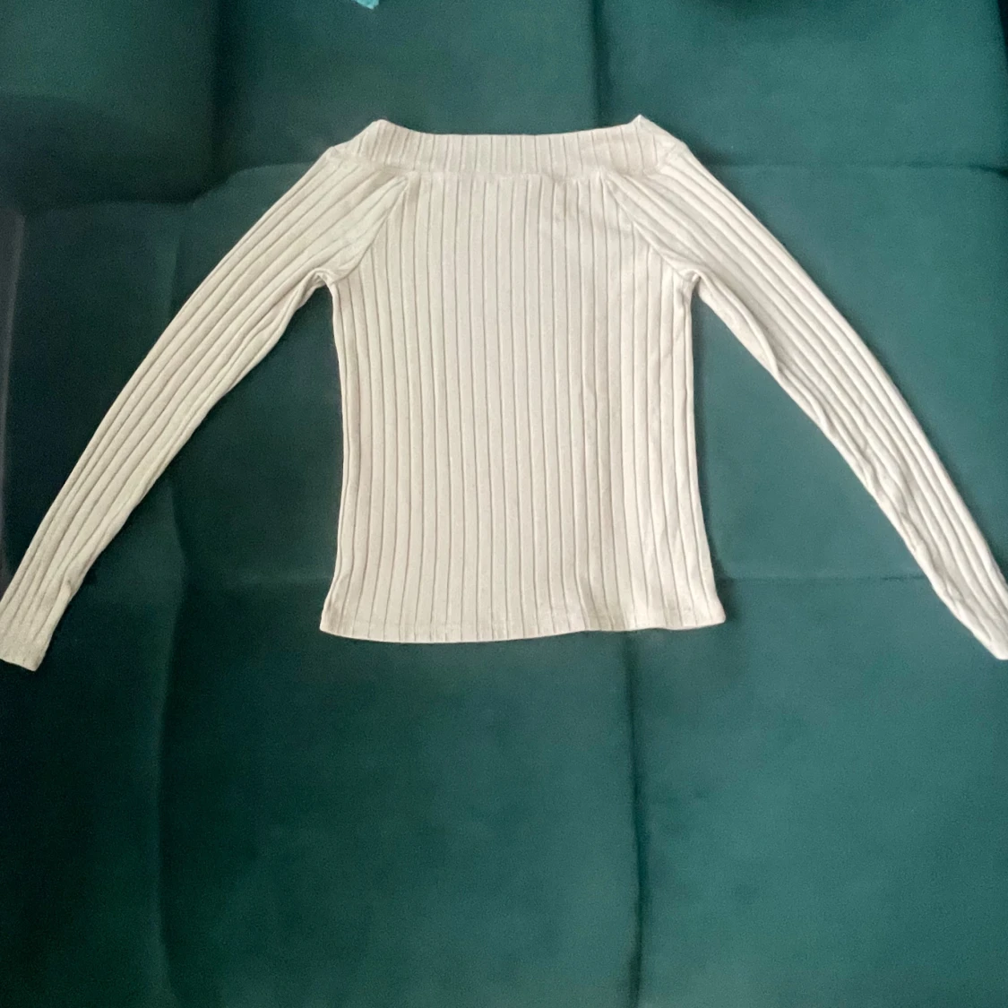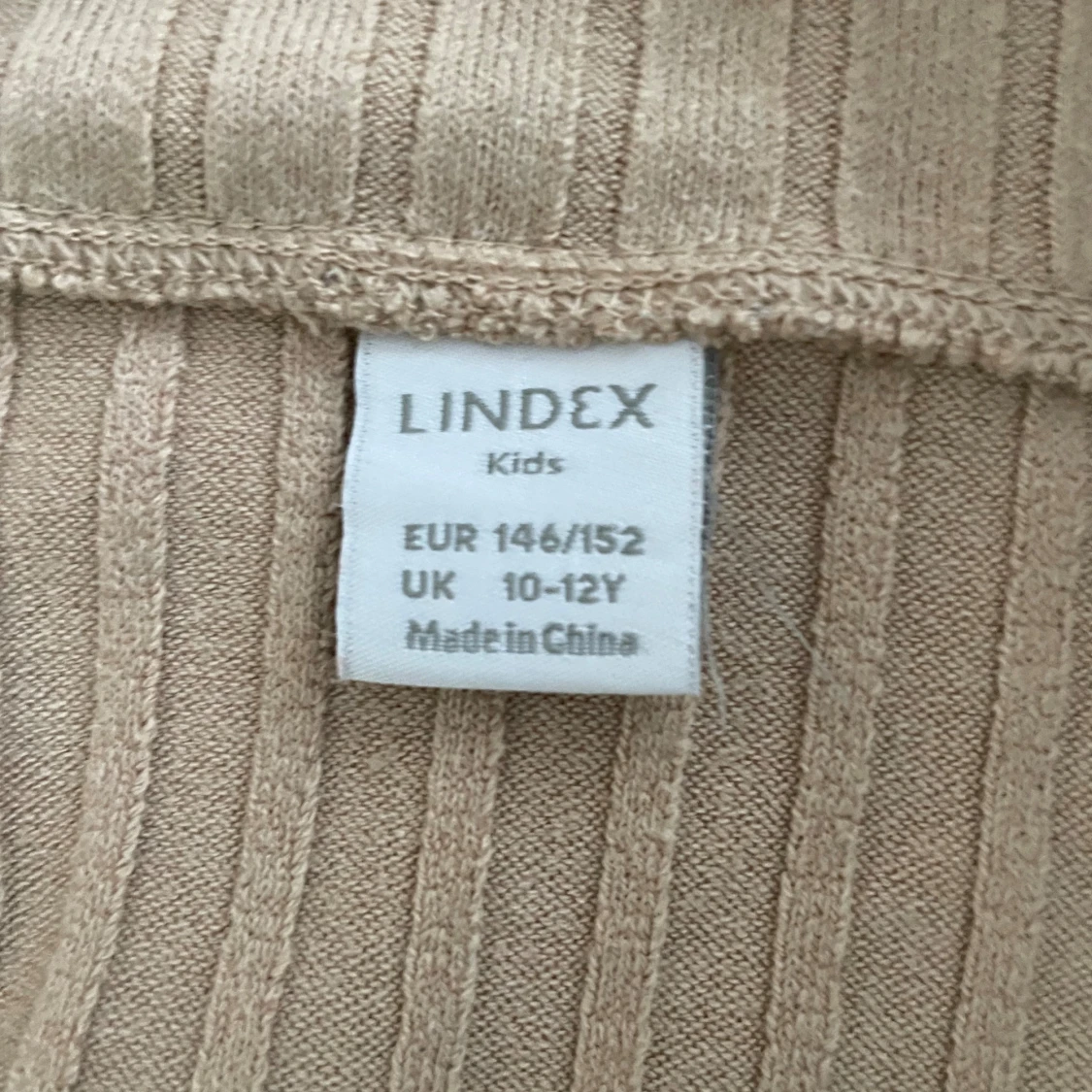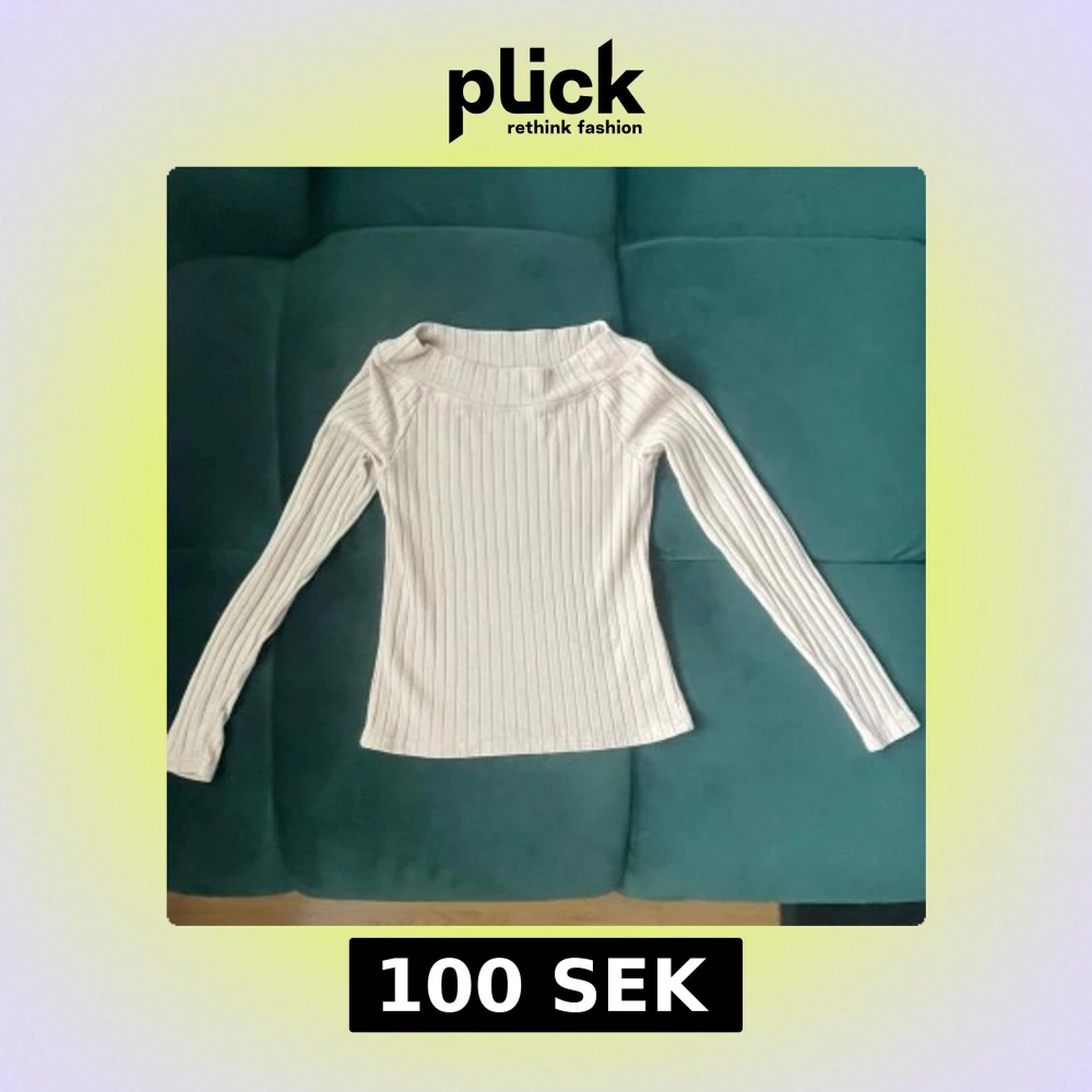 Säljer en ribbad beige långärmad tröja från Lindex. Tröjan har en bredare halsringning och är i mjukt, stretchigt material som sitter snyggt på kroppen. Perfekt att styla med jeans eller kjol för en clean look.