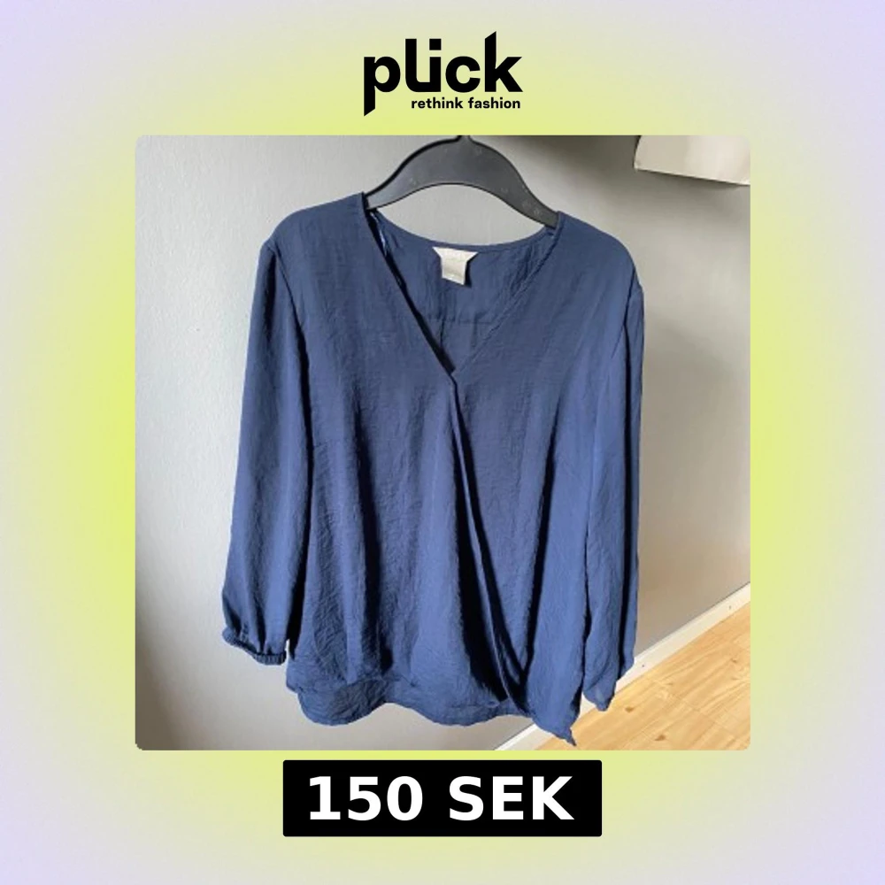 Säljer en mörkblå omlottblus från Lindex med långa ärmar. Har använt 1 gång.