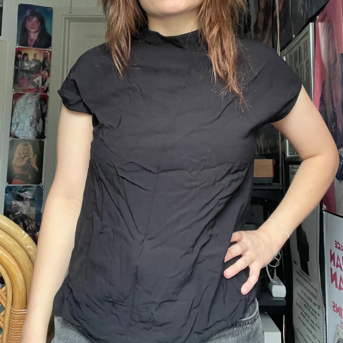 Svart blus med knapp baktil. Jag kan mötas upp i Uddevalla centrum, annars fraktar jag gärna. Köparen står för frakten. (Står ej för postens slarv) katt finns i hemmet.