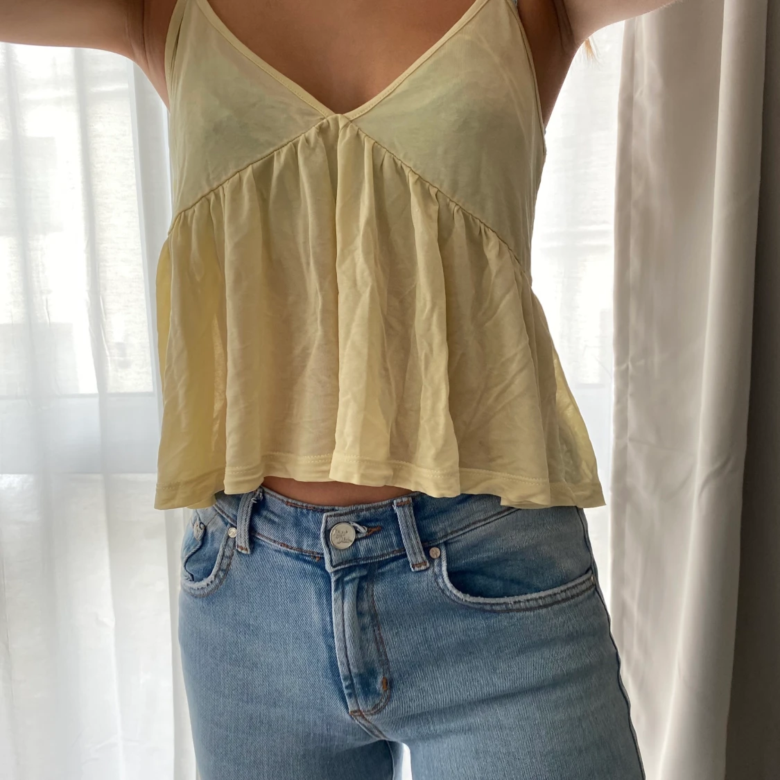 Ett gult sommar linne från pull&bear som sitter löst och är väldigt stretchigt. Köpare står för frakt