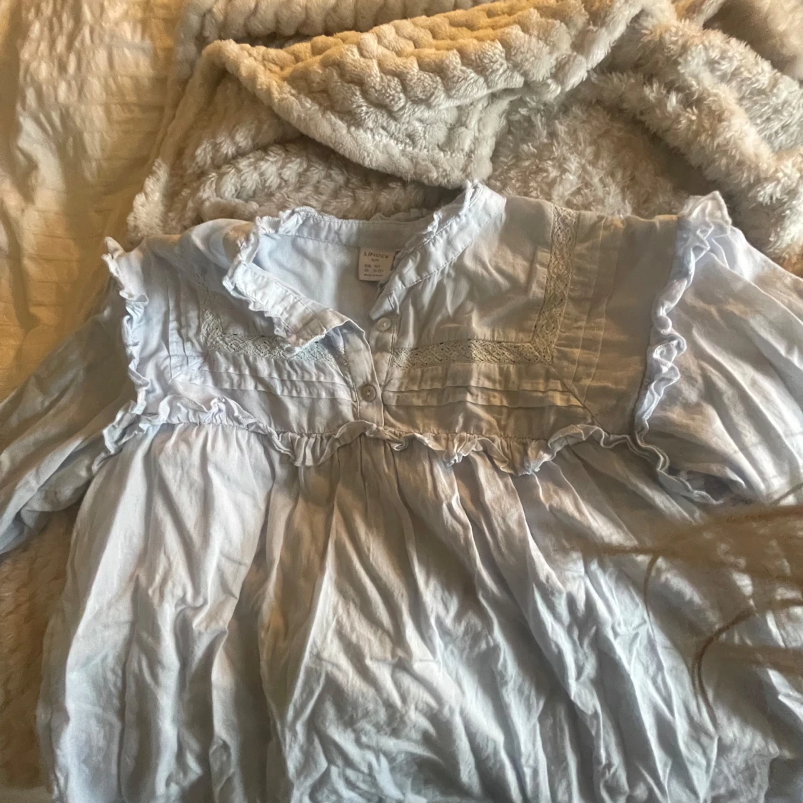Blå blus från Lindex 🩷 köpte för 400 kr säljer för 250 kr, använd ca 3 gånger 🩷 lite skrynklig på bilden 🩷