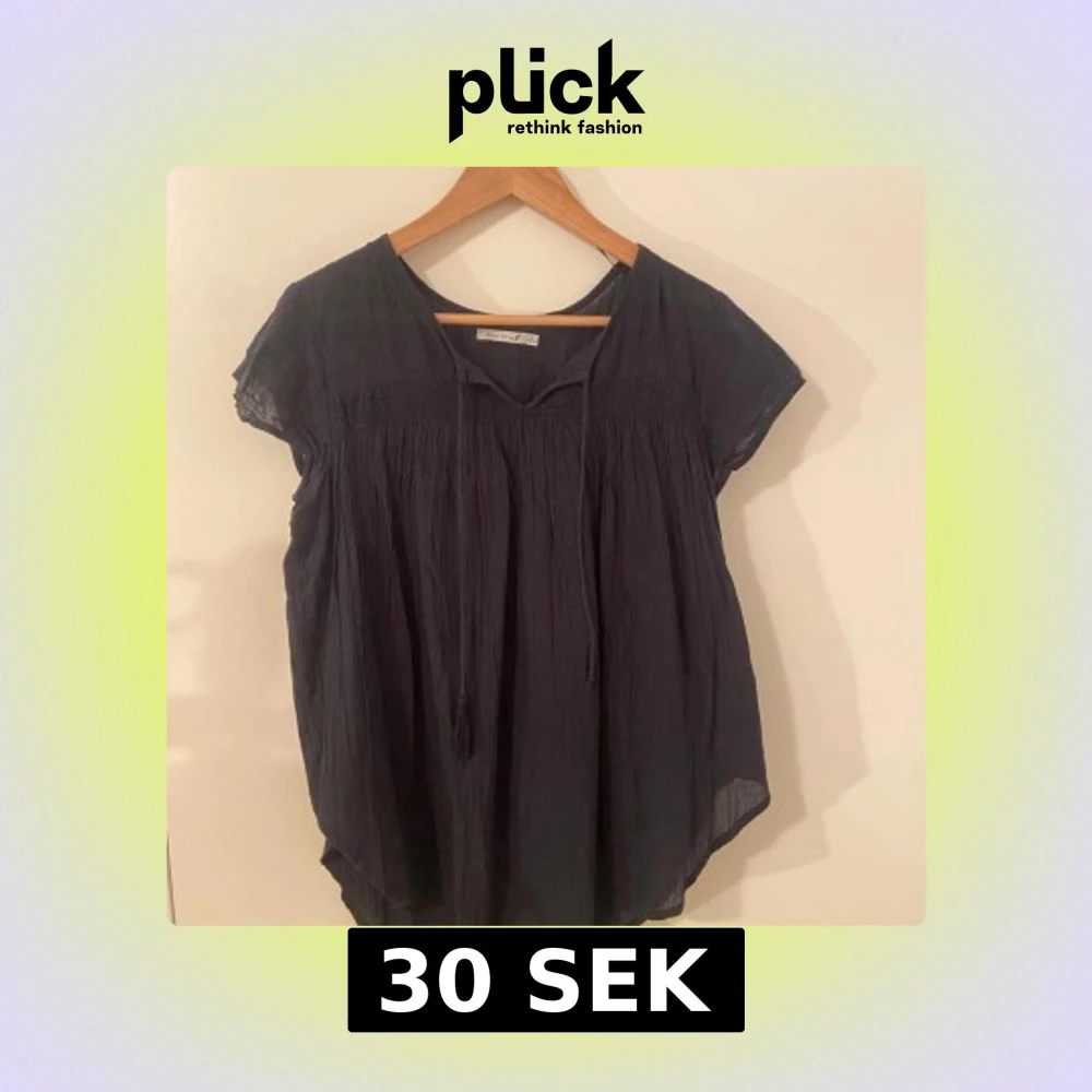 Svart blus från Black Story i luftig bomull med korta ärmar och snörning. Ena snöret har tappat sin toffs men de är inget som stört mig när jag burit den🥰