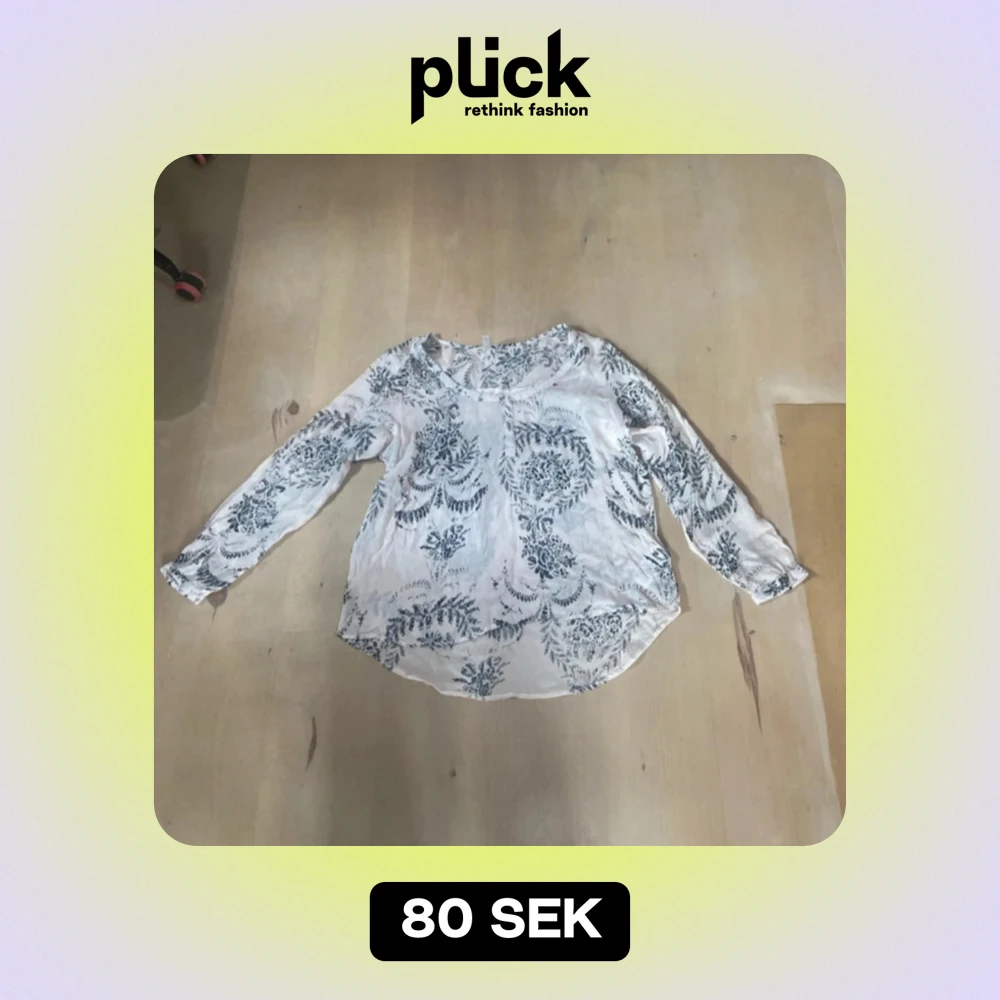Säljer en fin vit blus från Soyaconcept med ett vackert blommigt mönster i grått. Blusen har långa ärmar och en rund halsringning. Perfekt för både vardag och festliga tillfällen!