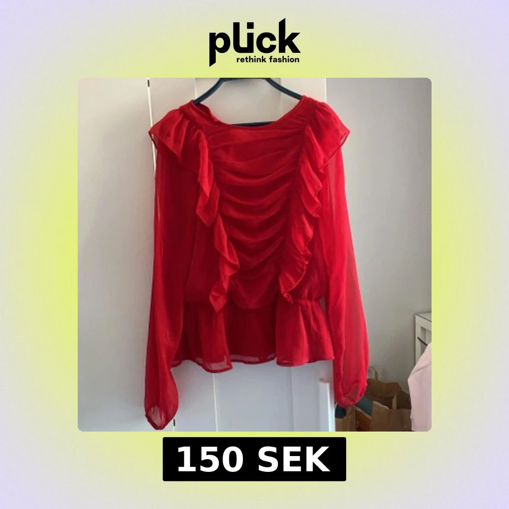 Säljer denna jättesöta röda blus,vet tyvärr inte märke men den är i storlek S/M och är i bra skick. Passar perfekt till julen💕