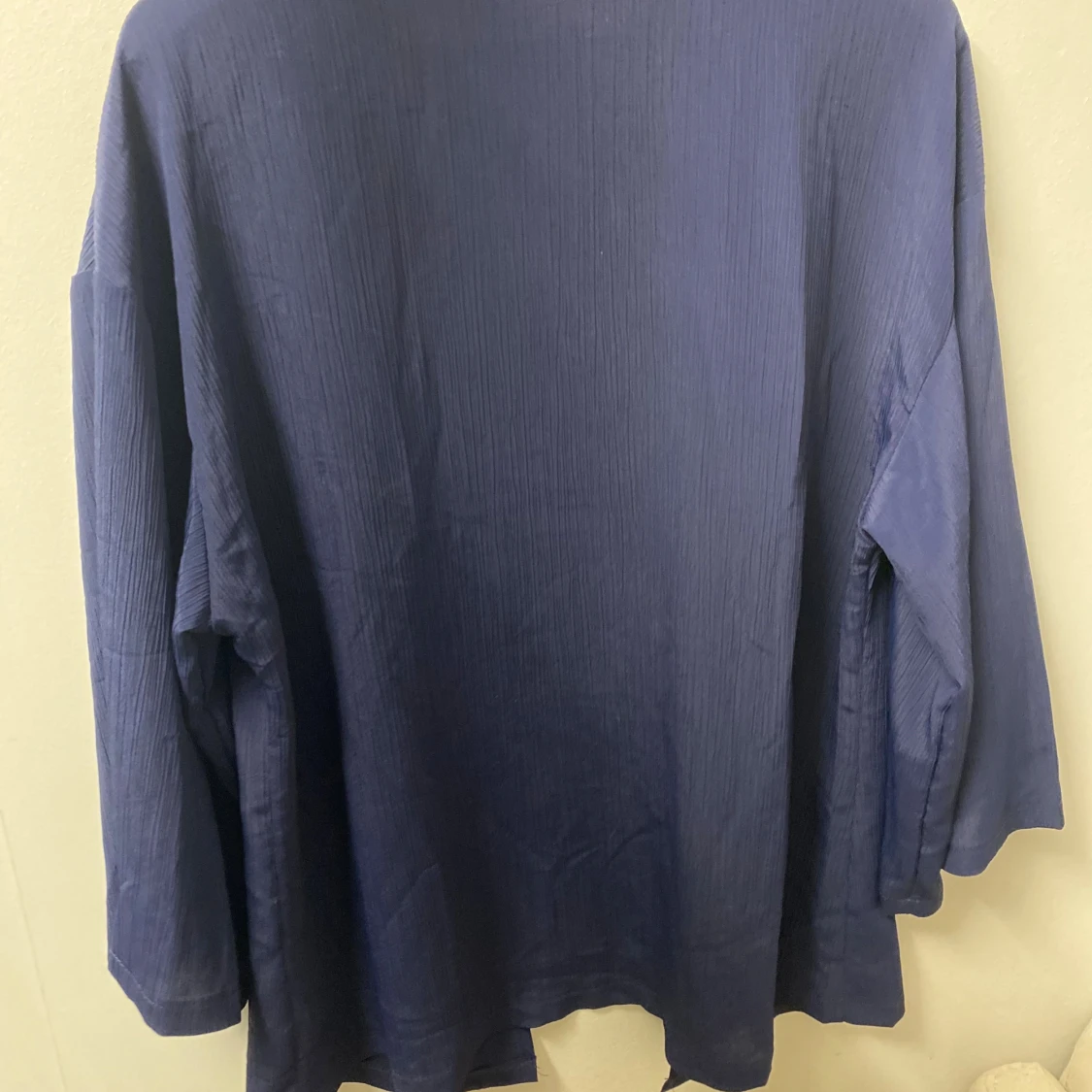 Snygg blå overshirt med avslappnad passform och långärmade ärmar. Materialet är lätt och har en diskret ribbad struktur.