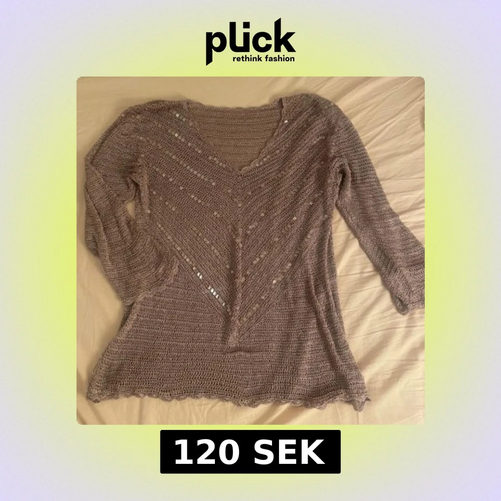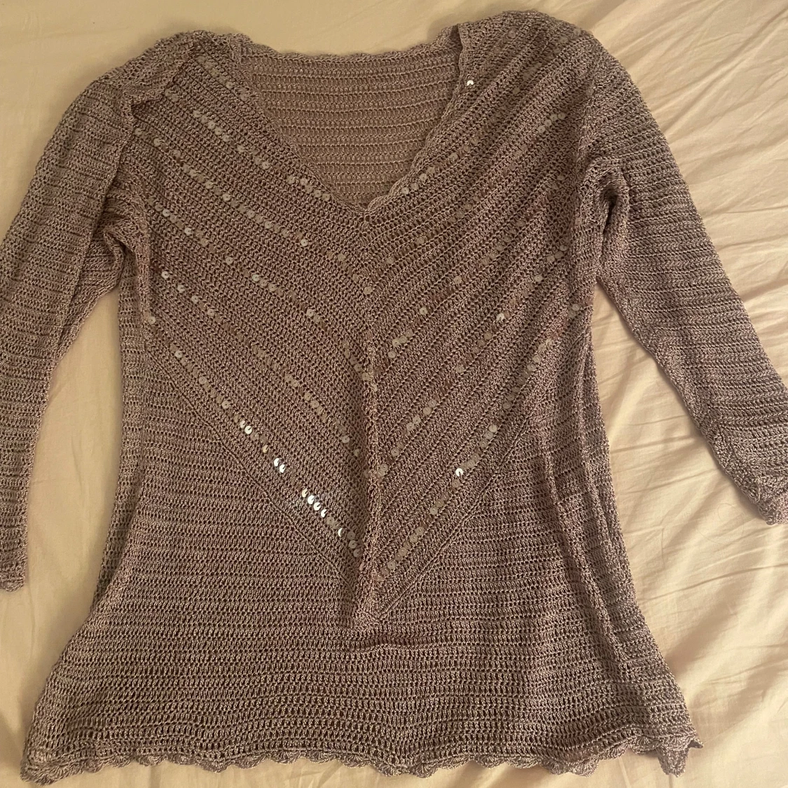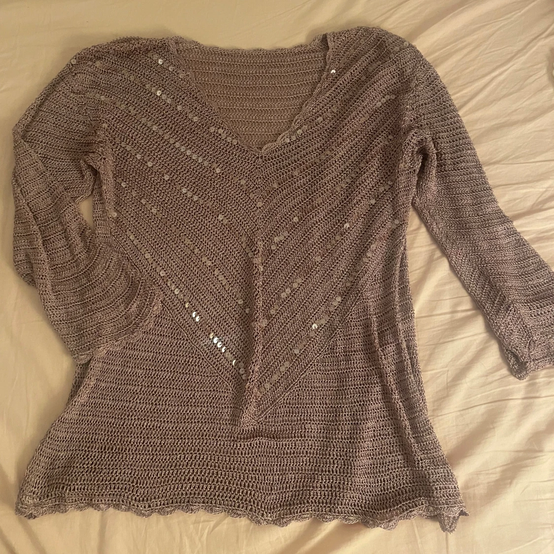 Lila stickad blus, vintage med fina paljetter på. Väldigt fint skick. Strl M