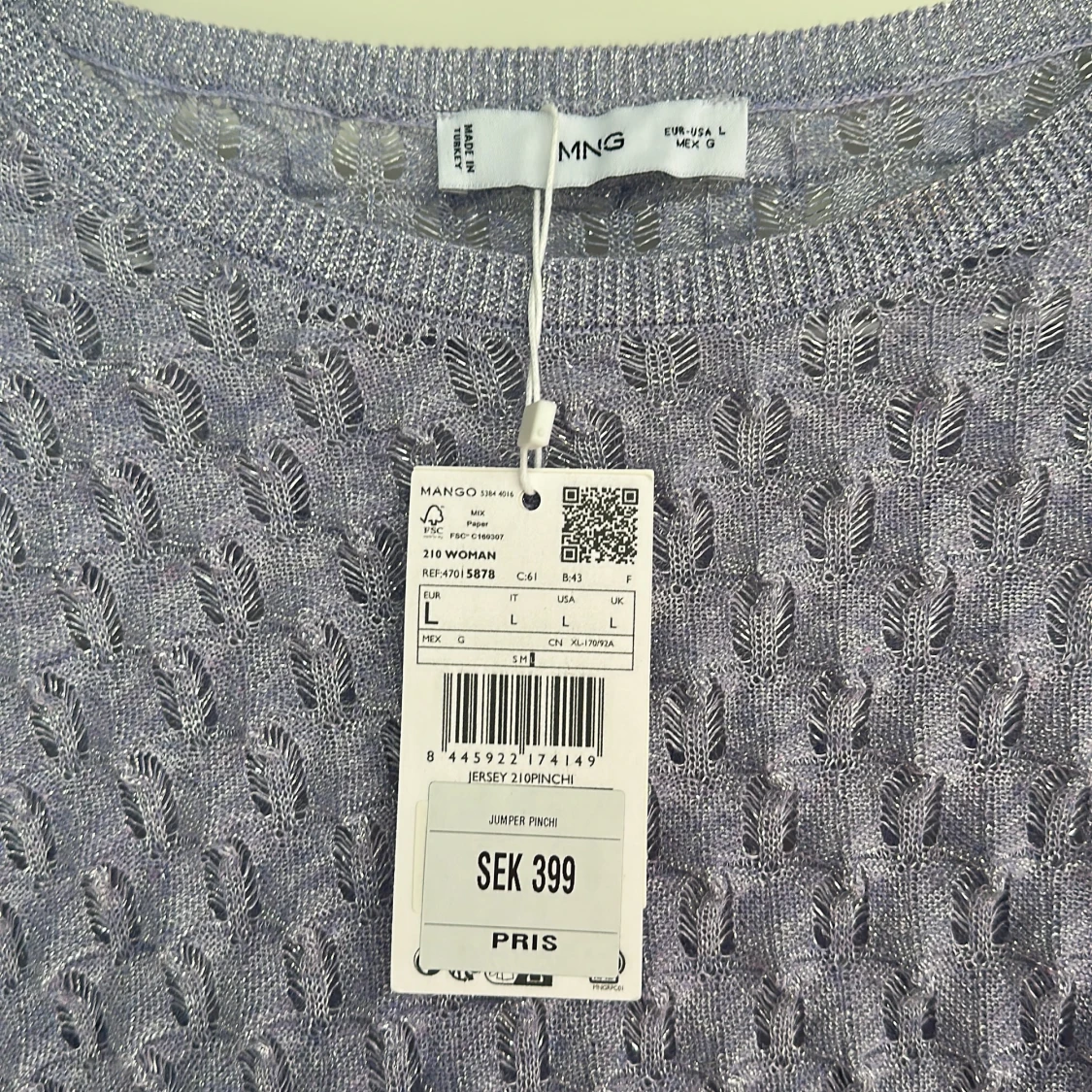 Lila glittrig top från mango, aldrig använd. Tröjan är liten i storleken, mer som en M.