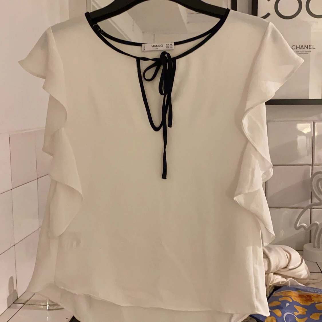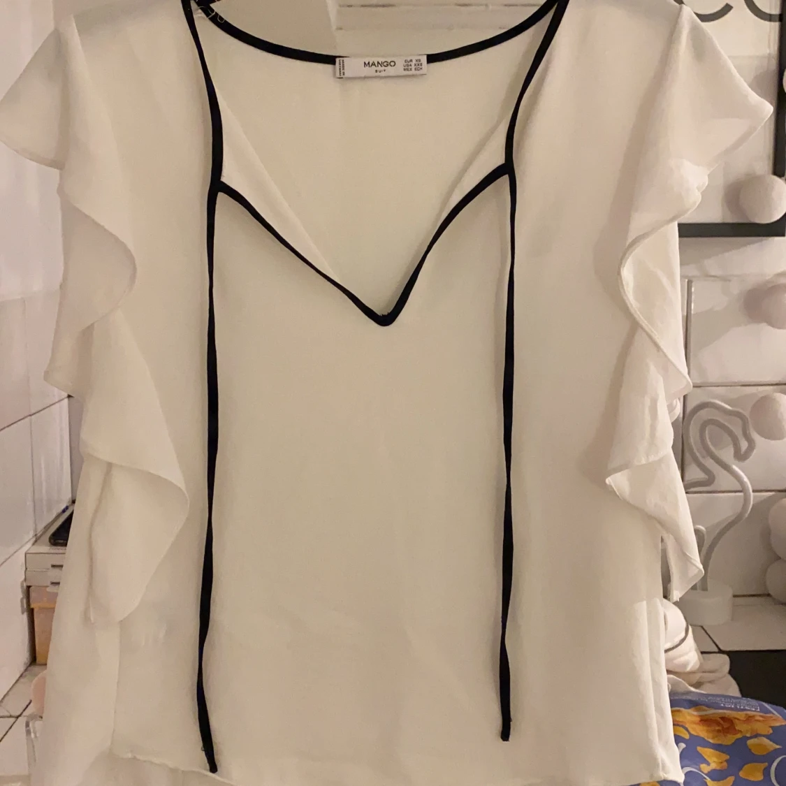 Söt blus från mango! Pris ex frakt 😊 ganska stor i storlek så skulle säga att den passa mellan xs-s