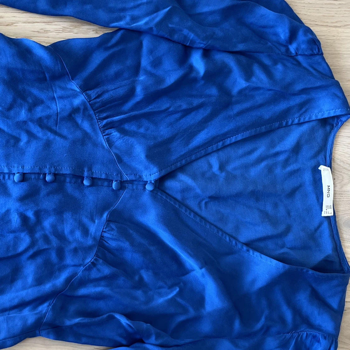 Blå blus från mango, bra skick men lite slitage på några ställen, ex sista bilden, har fler bilder