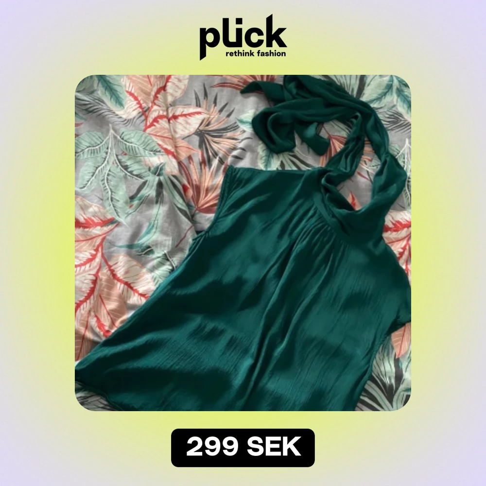 Snygg grön blus/topp som man kan knyta på lite olika sätt runt/vid halsen🎀 använd endast en gång och i väldigt bra skick💗