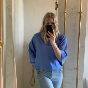 Blus med kortare arm, storlek S. Ett fint och lite glansigt material med v-ringning.
