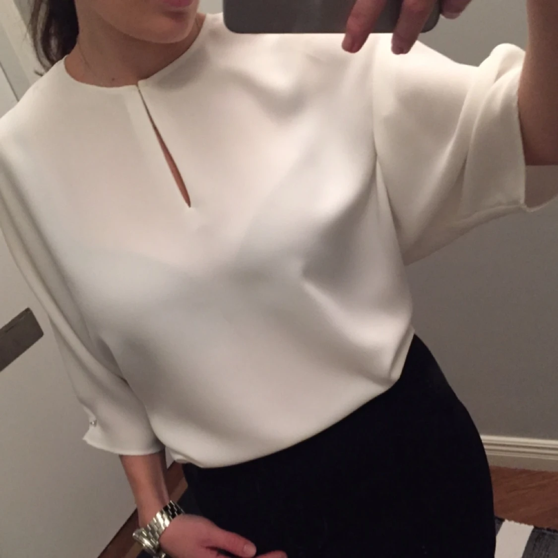 Blus från Mangos suit collection. Diskret öppning fram samt fina knappar i ärmarna. Använd blott en gång.