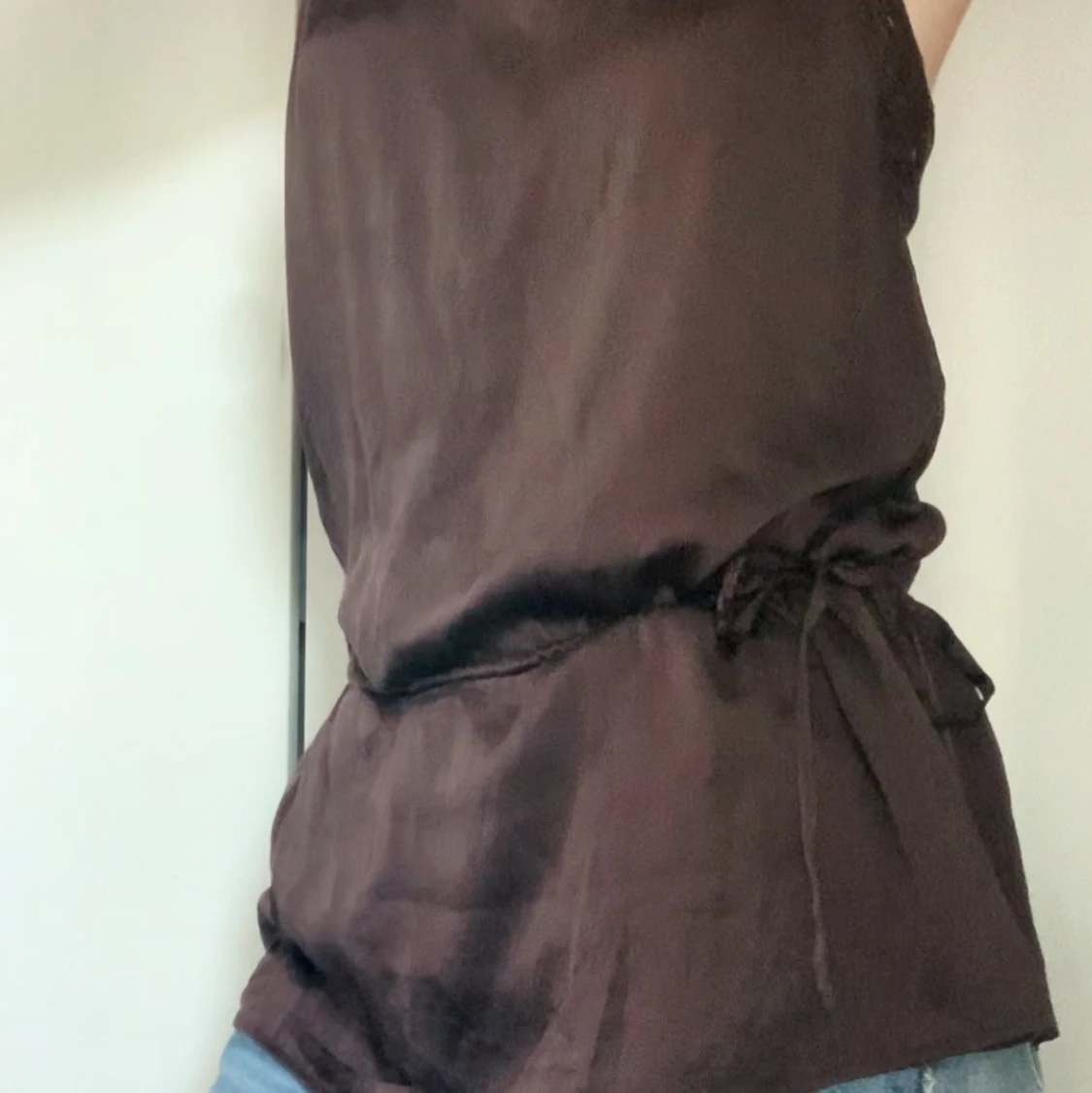 En brun topp med paljettdetalj högst upp och ett knytband i midjan. Mjukt och skönt material, den passar jättebra till både vardags och fest!! Den passar tyvärr inte mig längre men den är i bra skick och försiktigt använd. Frågor? Skriv på DM!🤎