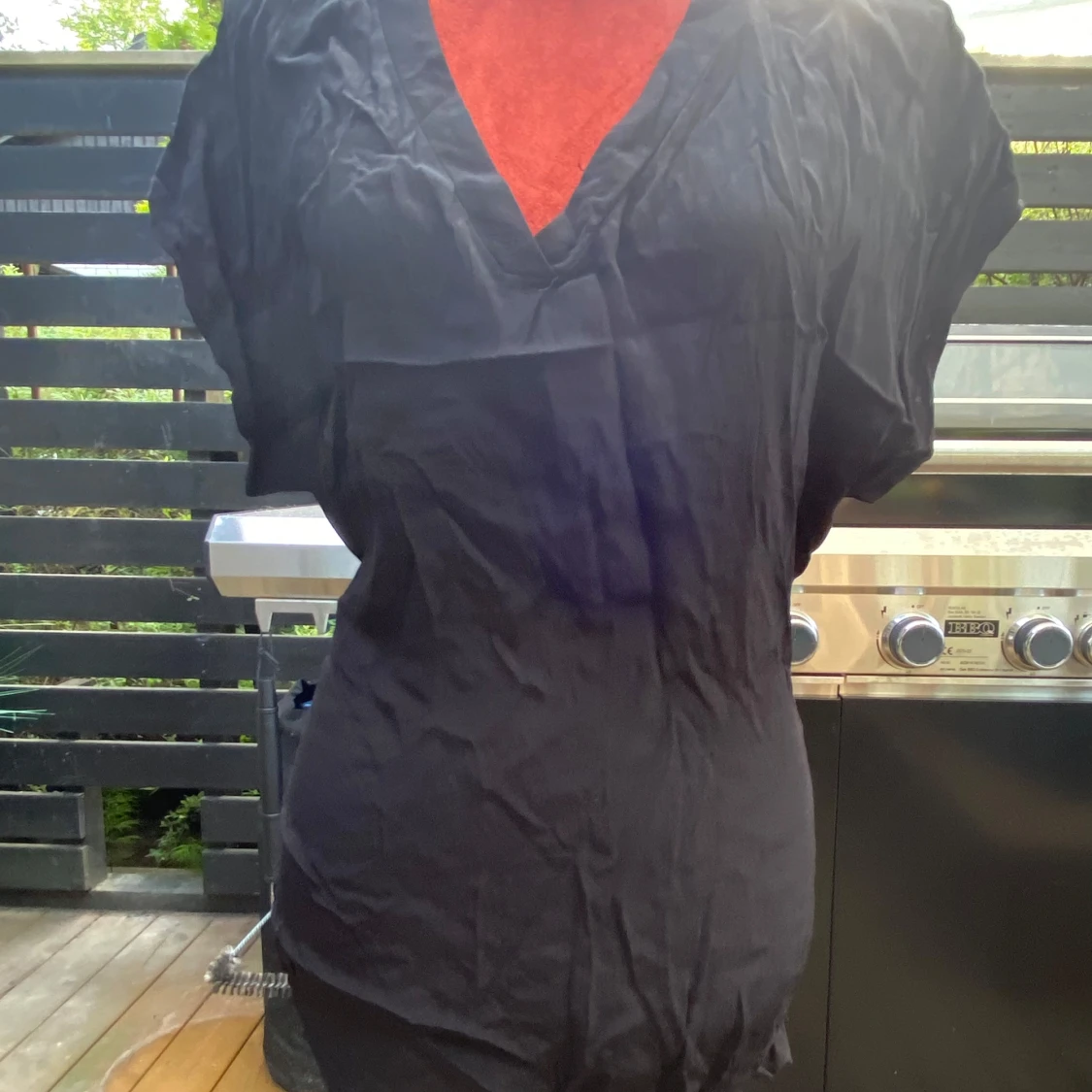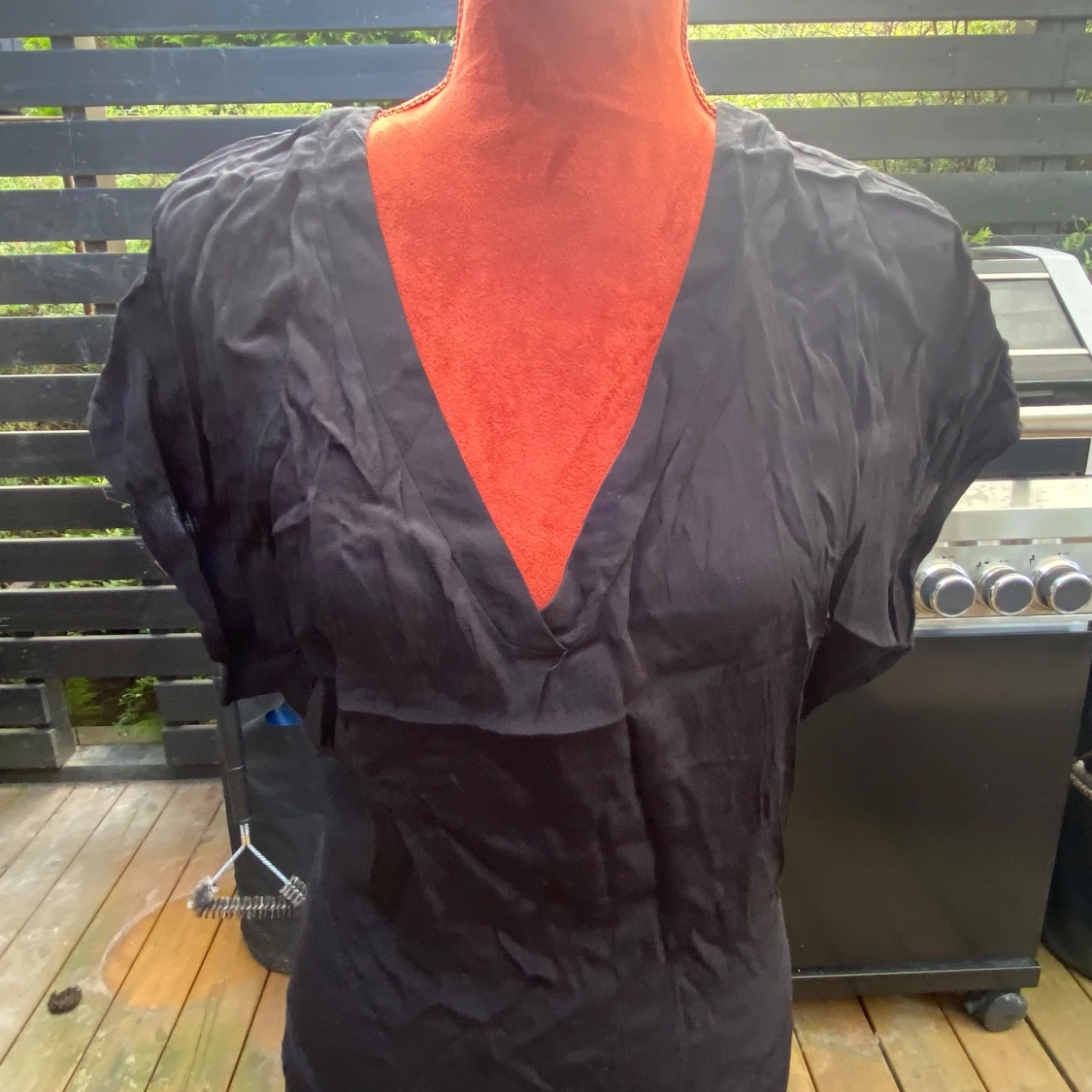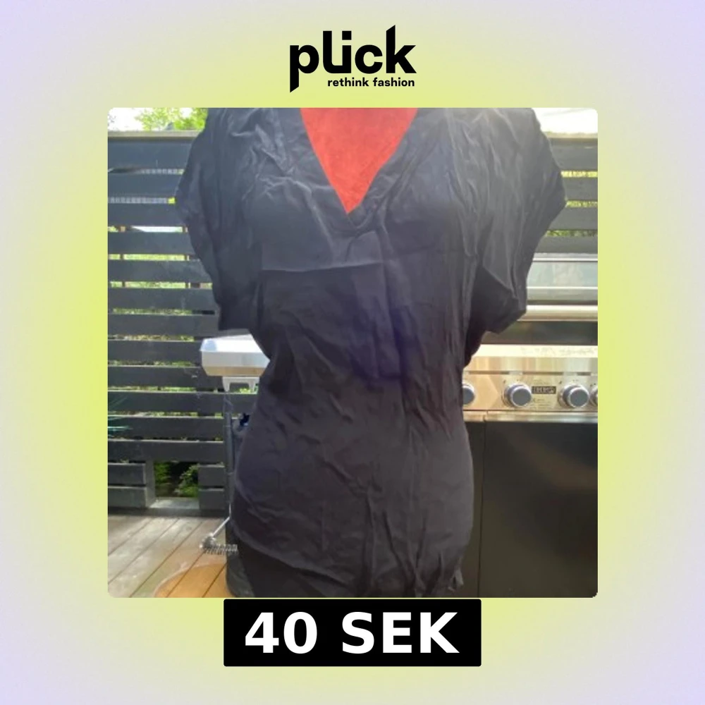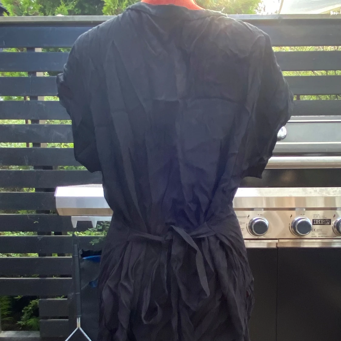 Svart kortklänning från KappAhl med v-ringning och knytband i midjan. Klänningen har korta ärmar och är tillverkad i ett lätt, tunt tyg som ger en luftig känsla. Perfekt för dig som gillar en enkel och stilren look.