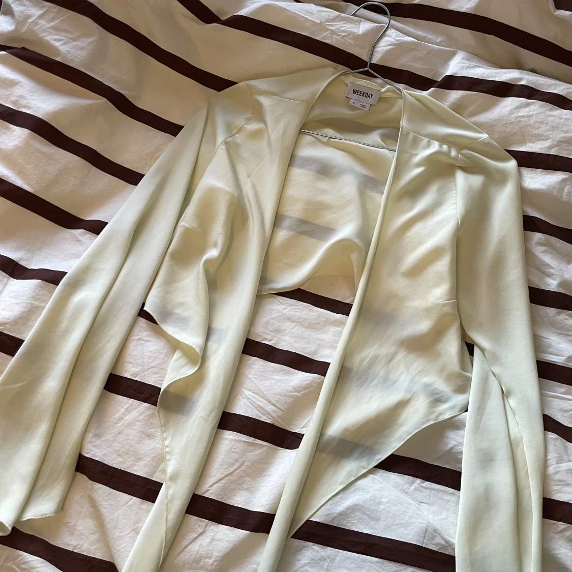 Ljusgul blus från Weekday. Ganska genomskinlig! Kan knytas både fram och bak om man har något under☺️Köparen står för frakt 💌