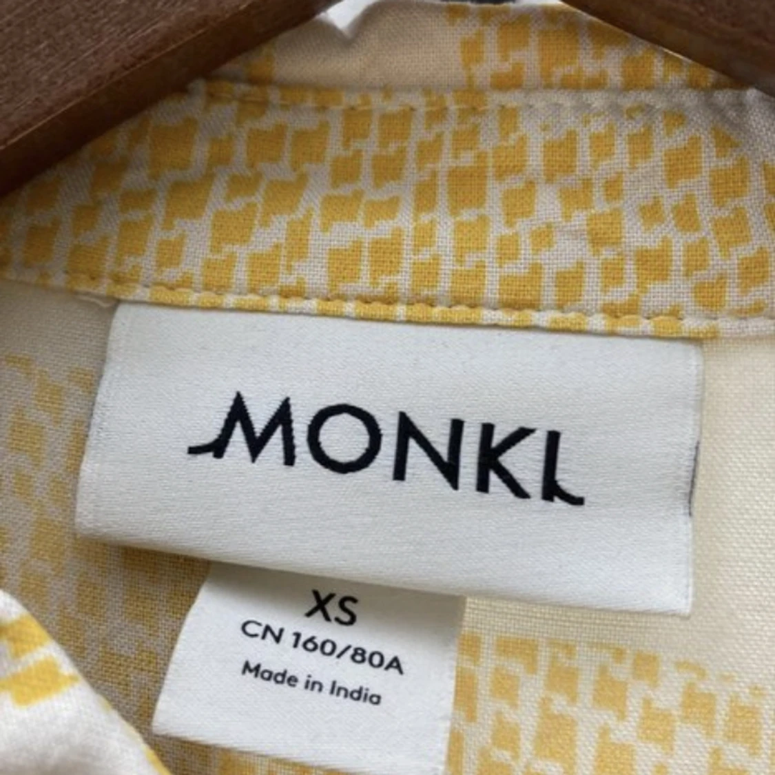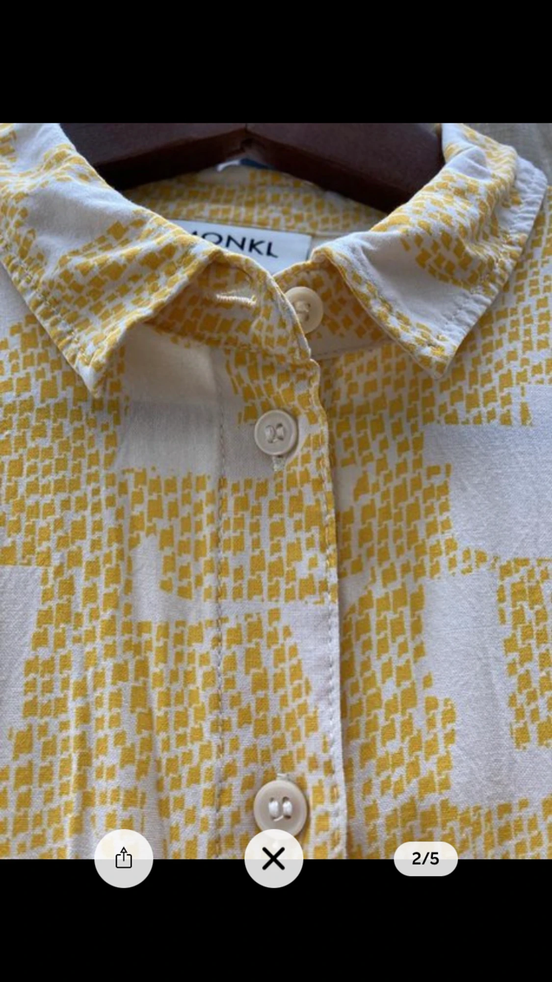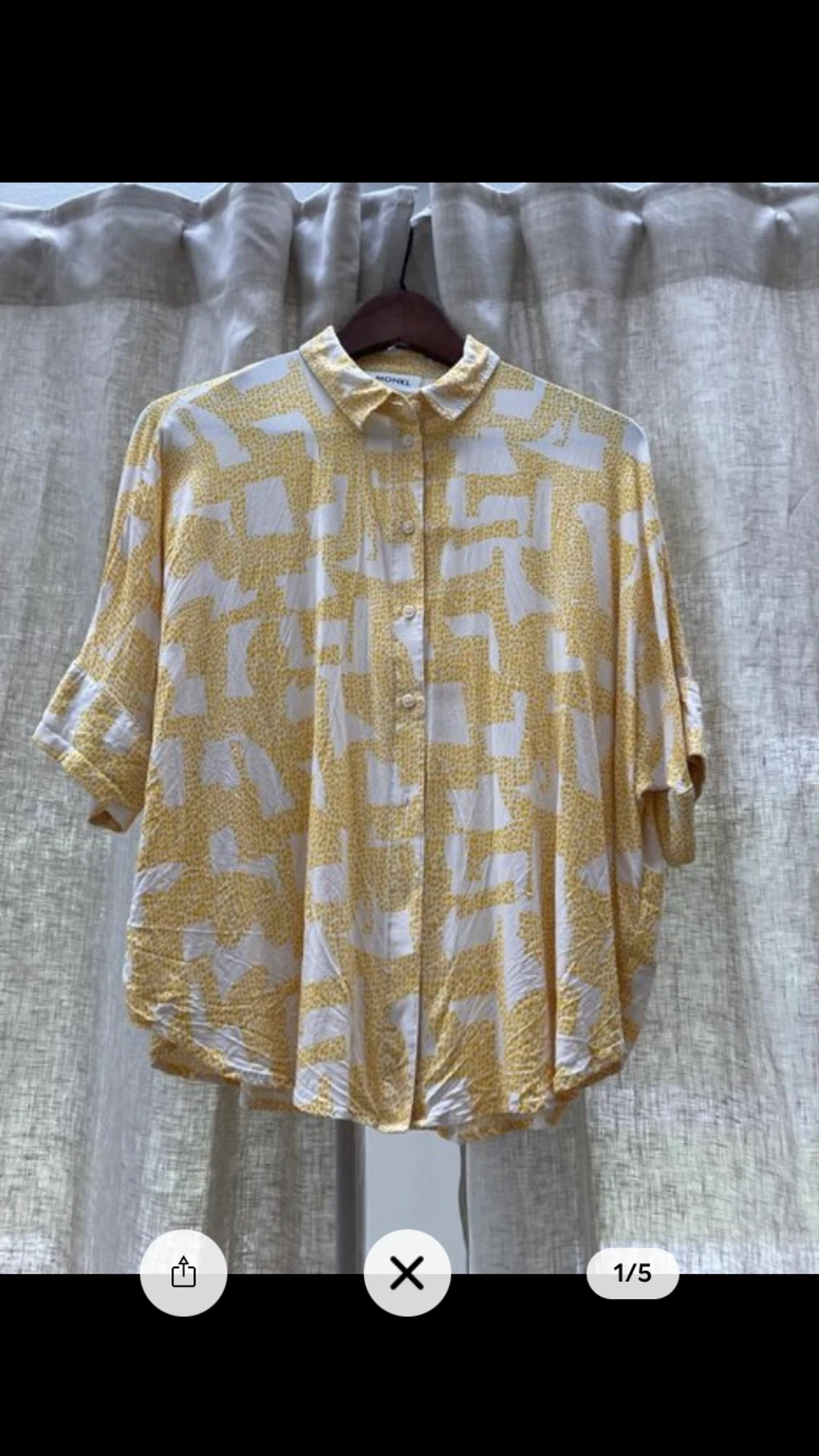 Superfin blus i gult och vitt mönster. Lite halvlånga armar som slutar ovanför armbågen. Luftig och mjuk i tyget.