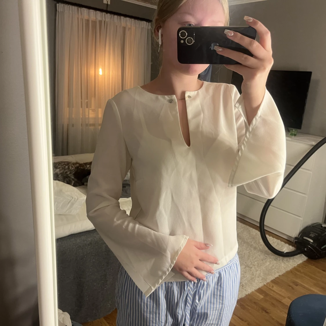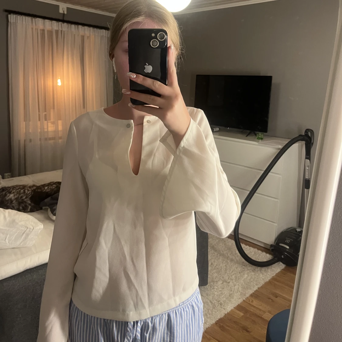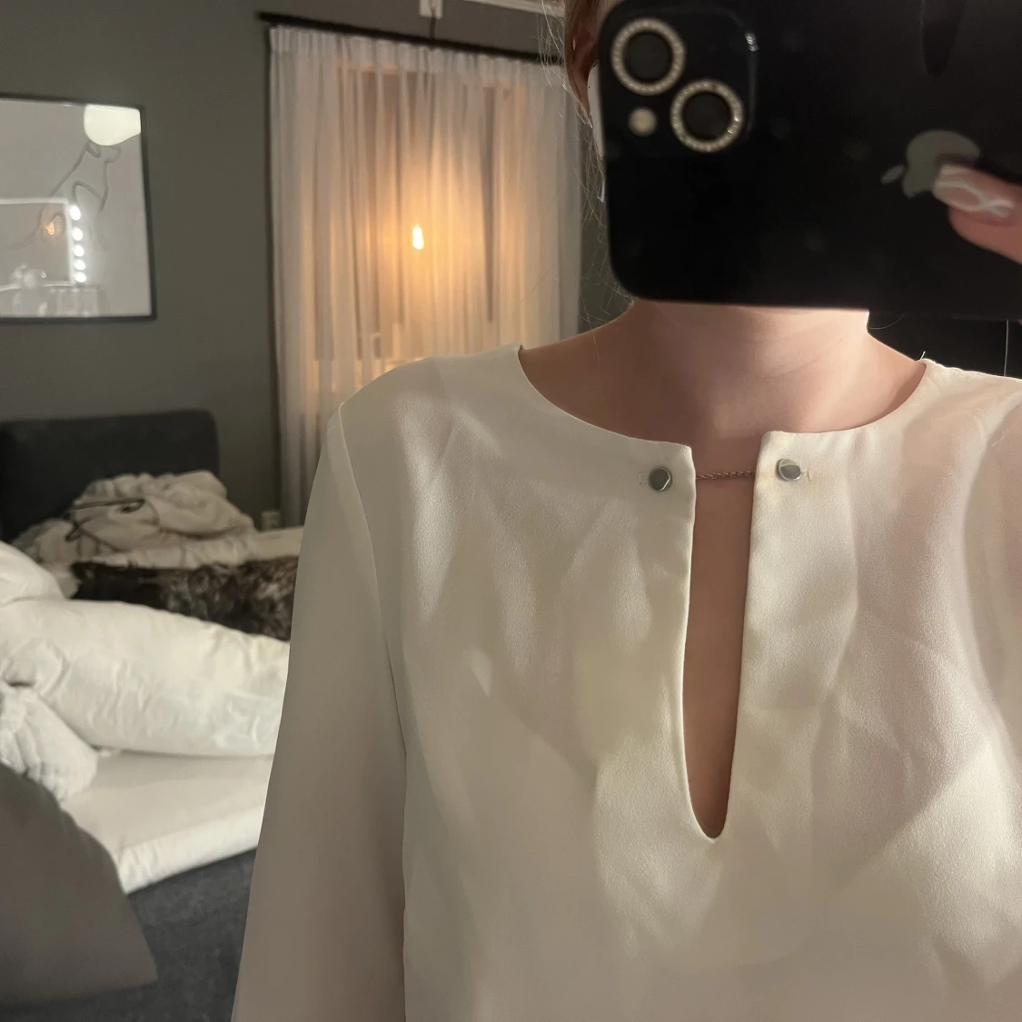 Vit blus med kedjeknäppe där fram. Bra skick. Köparen står för frakten💗💗