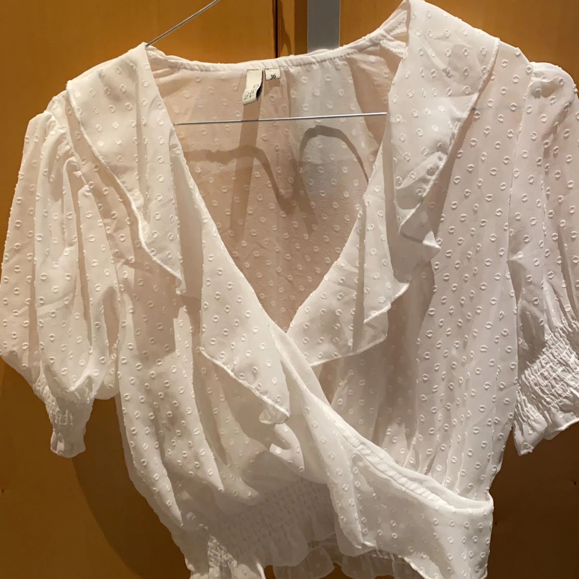 Vit, prickig kortärmad blus från Nelly.com i strl. S. Aldrig använd.