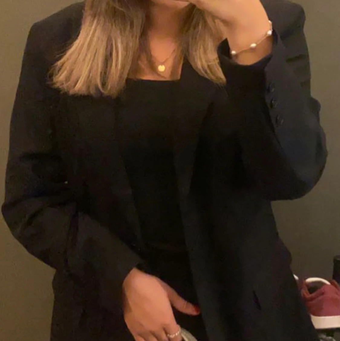 Säljer min fina oversized kavaj då jag har två styckna. Den är från Nelly🤩 i storlek 34 passar alla då den är oversized så de är hur själv man vill att den ska sitta 🥰