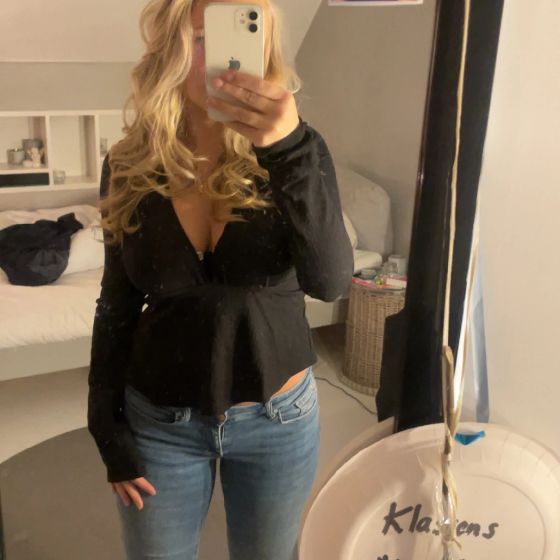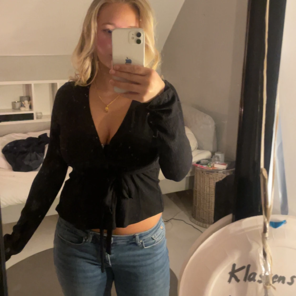 säljer en jättefin oanvänd topp från Nelly💕 man kan knyta rosetten både på fram och baksida och den är i storlek S🫶🏼