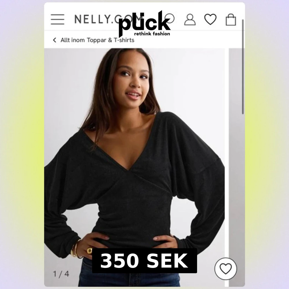 Snygg svart omlottopp från Nelly med djup v-ringning och långa, lösa ärmar. Toppen har en croppad passform och är tillverkad i mjukt syntetmaterial som sitter skönt mot kroppen. Perfekt för dig som gillar stilrena och trendiga plagg.