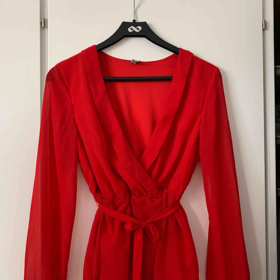 Röd blus från Nelly med band i midjan